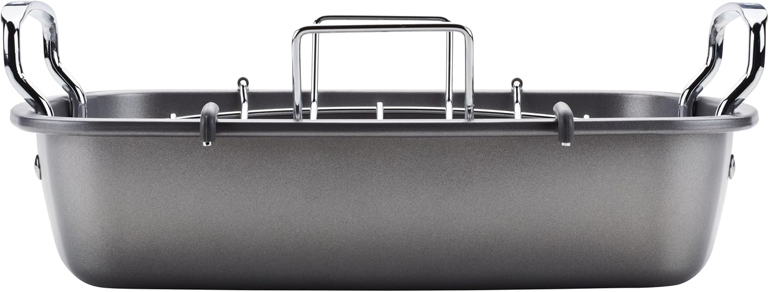 Circulon Nonstick Roasting Pan / Roaster with Rack - 17 Inch x 13 Inch, Gray