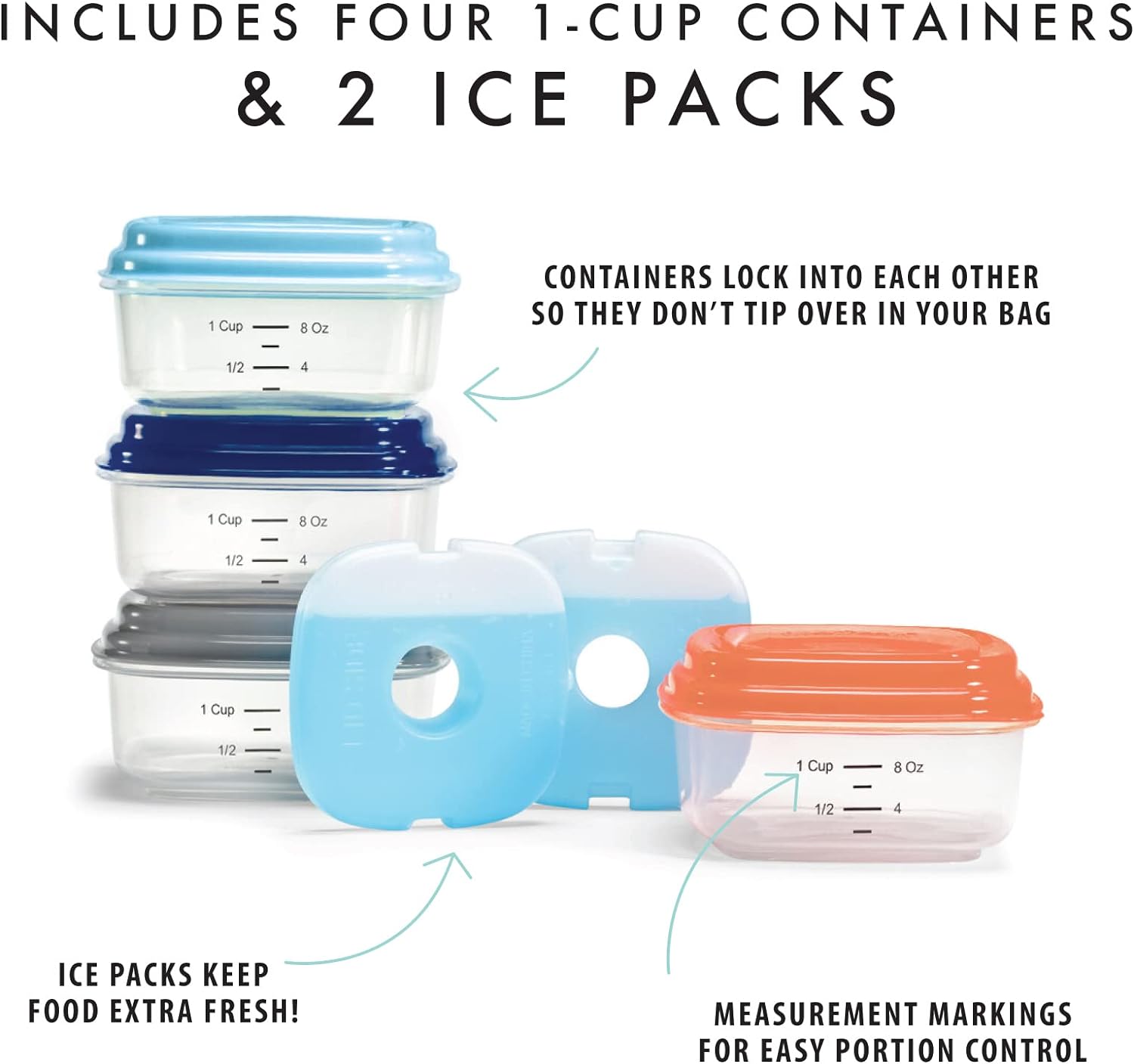 - INCLUDES 2 ATTACHABLE ICE PACKS - Complete with 2 slim ice packs that easily attach to the lids for longer cooling. Simply freeze overnight to keep meals cold throughout the day. Safe for the microwave, works great as a soup container with lids.