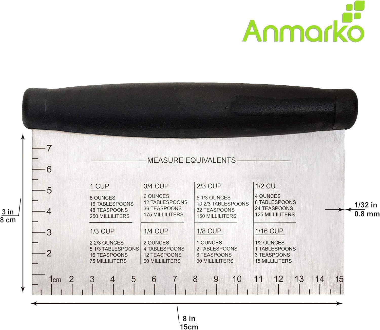 - Made from sturdy stainless steel - non-reactive, hygienic and durable. Heavy duty, scraper metal blade thickness is 1/32 inch.