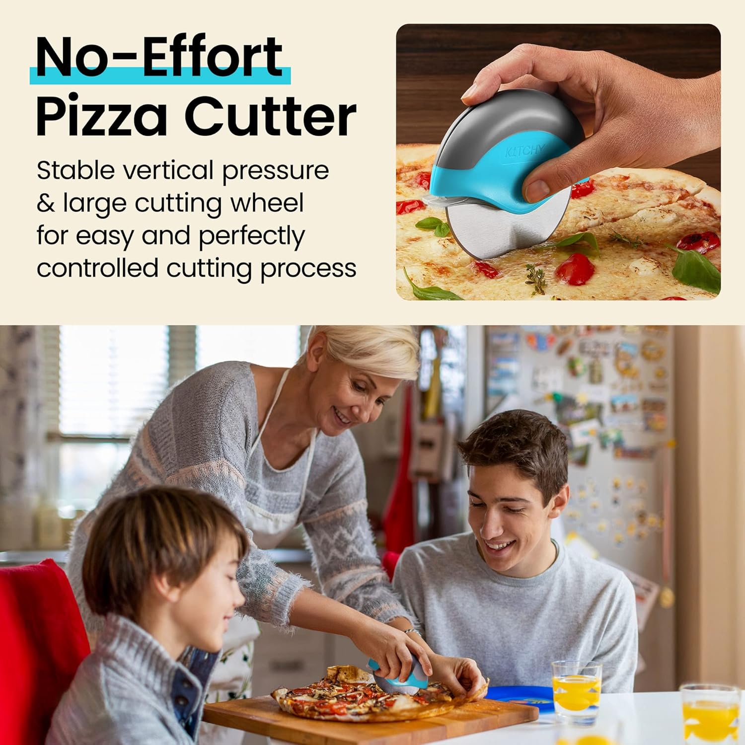 Kitchy Pizza Cutter Wheel with Protective Blade Cover, Ergonomic Pizza Slicer (Blue)