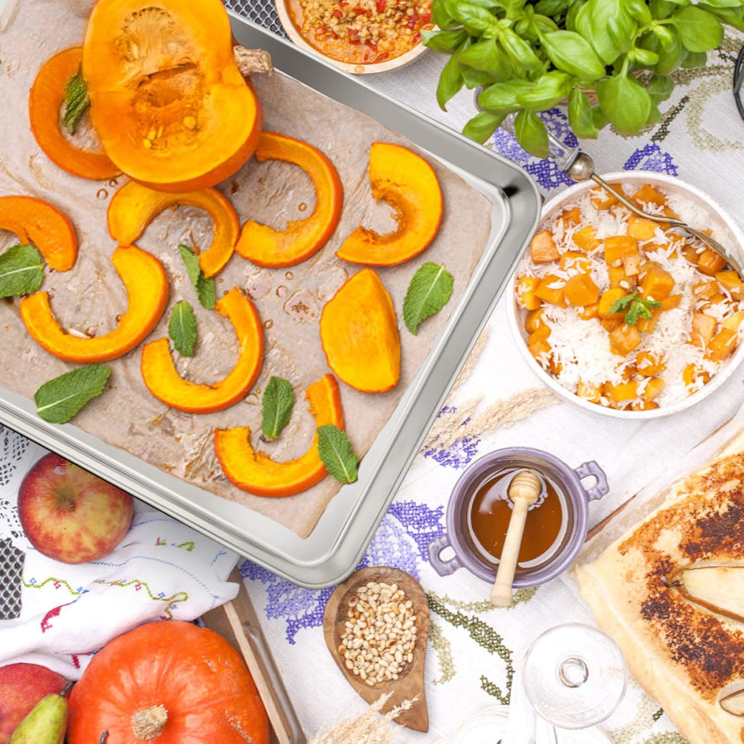 - 【HEAVY DUTY】The stainless steel baking pan has proper weight to cook with and feels sturdy when holding in hands, Durable and last for a long lifetime