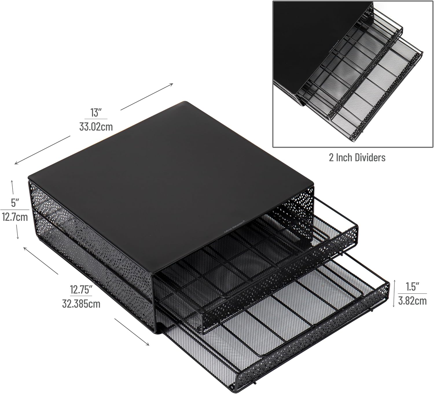 Mind Reader Single Serve Coffee Pod Organizer with 2 Drawers, 72 Pod Capacity, Metal Mesh, 13"L x 12.75"W x 5"H, Black