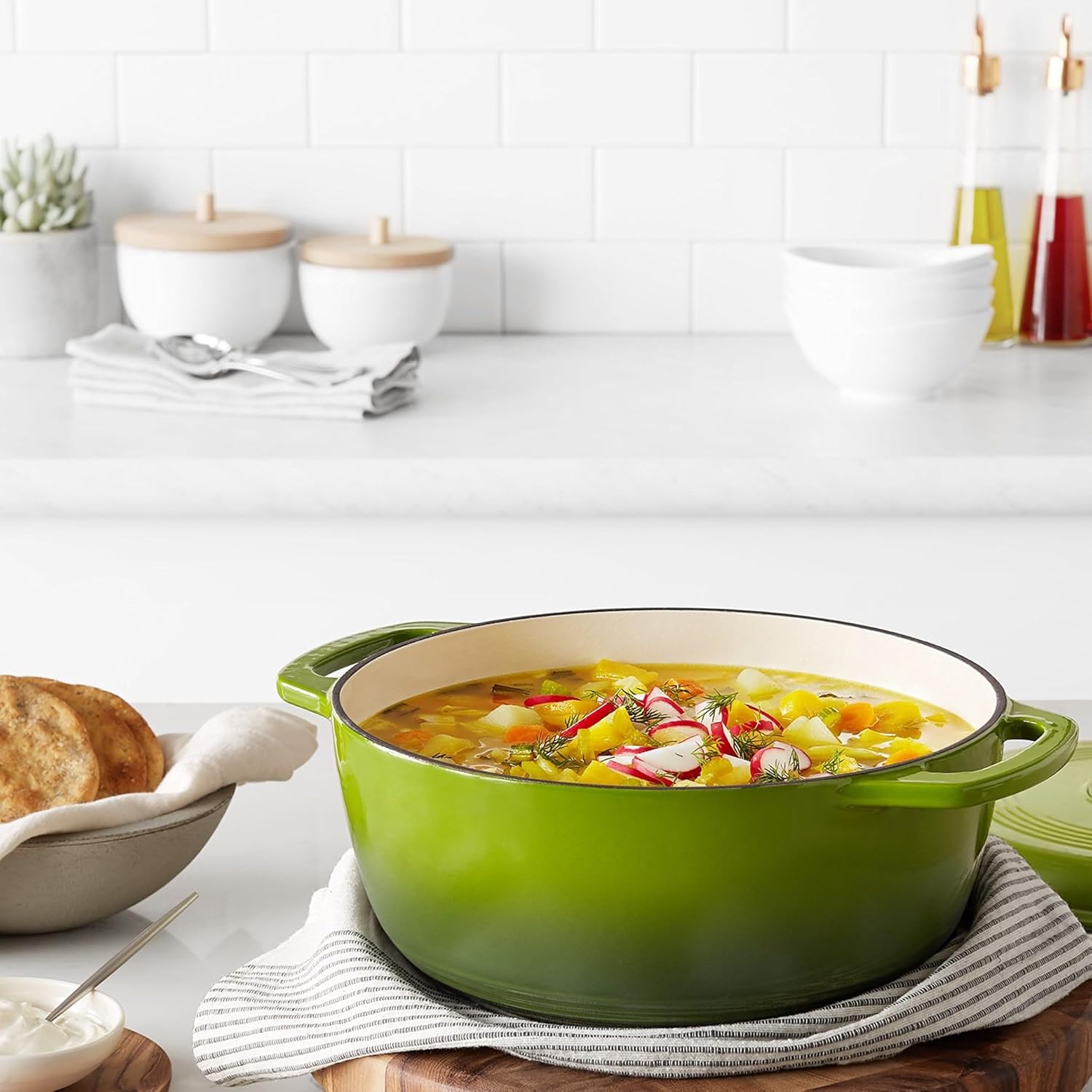 Amazon Basics Cast Iron Dutch Oven Pot with Lid, Enameled, Round, Dual Handles, Heavy-Duty, Medium, 6-Quart, Green