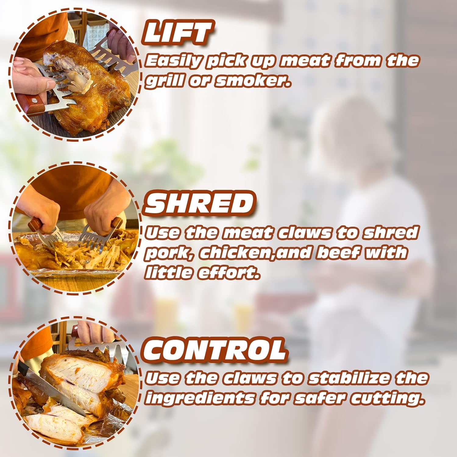 - Convenient And Practical - Sharp Steel Claws, Easy To Fix And Shred Pork, Beef, Burdock, Turkey, Poultry, Ham, Barbecue