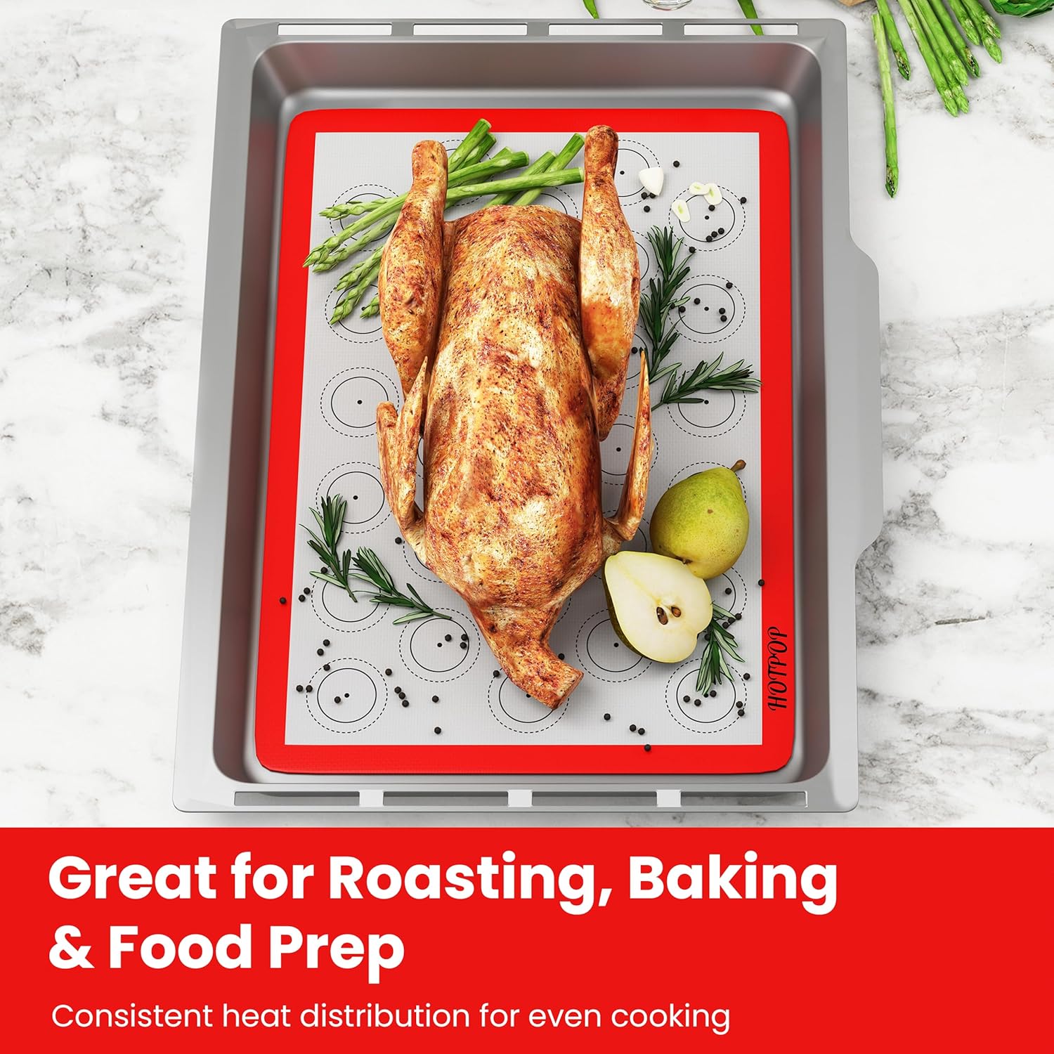 - Sized to Fit Your Baking Needs: Includes two half sheets at 16.5 x 11.6 in and two quarter sheets at 11.5 x 8.5 in; fits most cookie sheets for baking; stores flat or rolled in small kitchen spaces