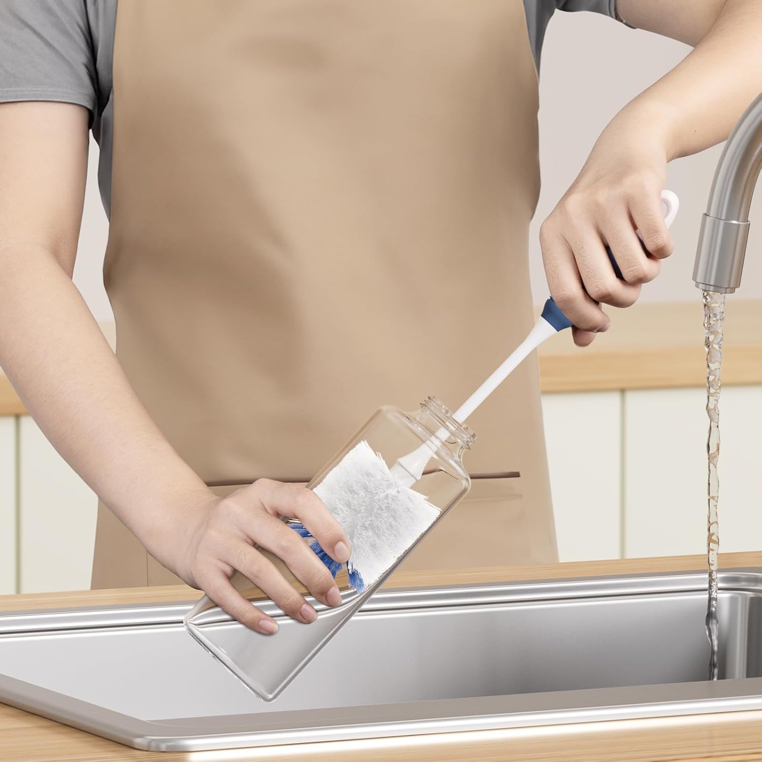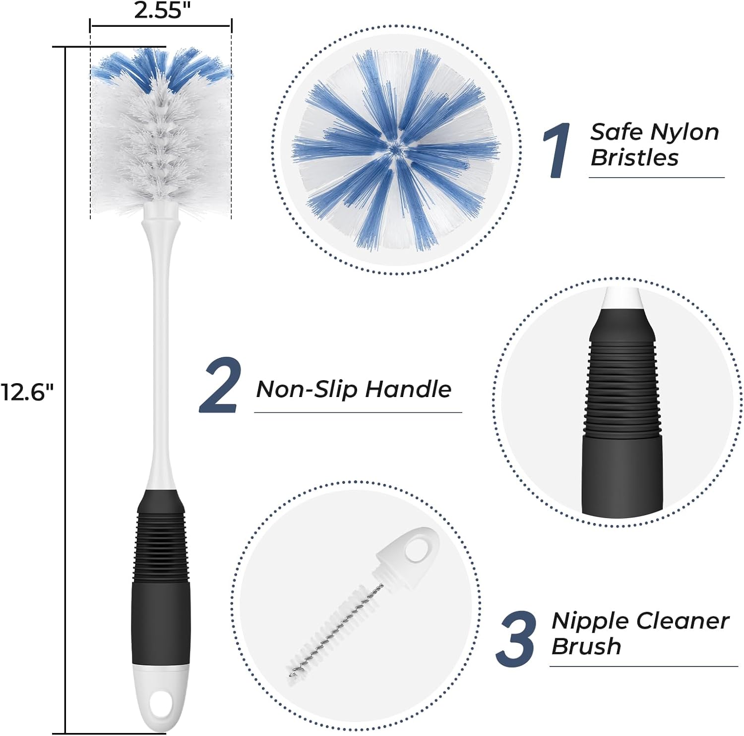 - Safe nylon bristles: Gentle yet effective, the soft white bristles of this bottle brush cleaner won't scratch surfaces. Amazer bottle brush reaches deep into narrow openings, ensuring clean.