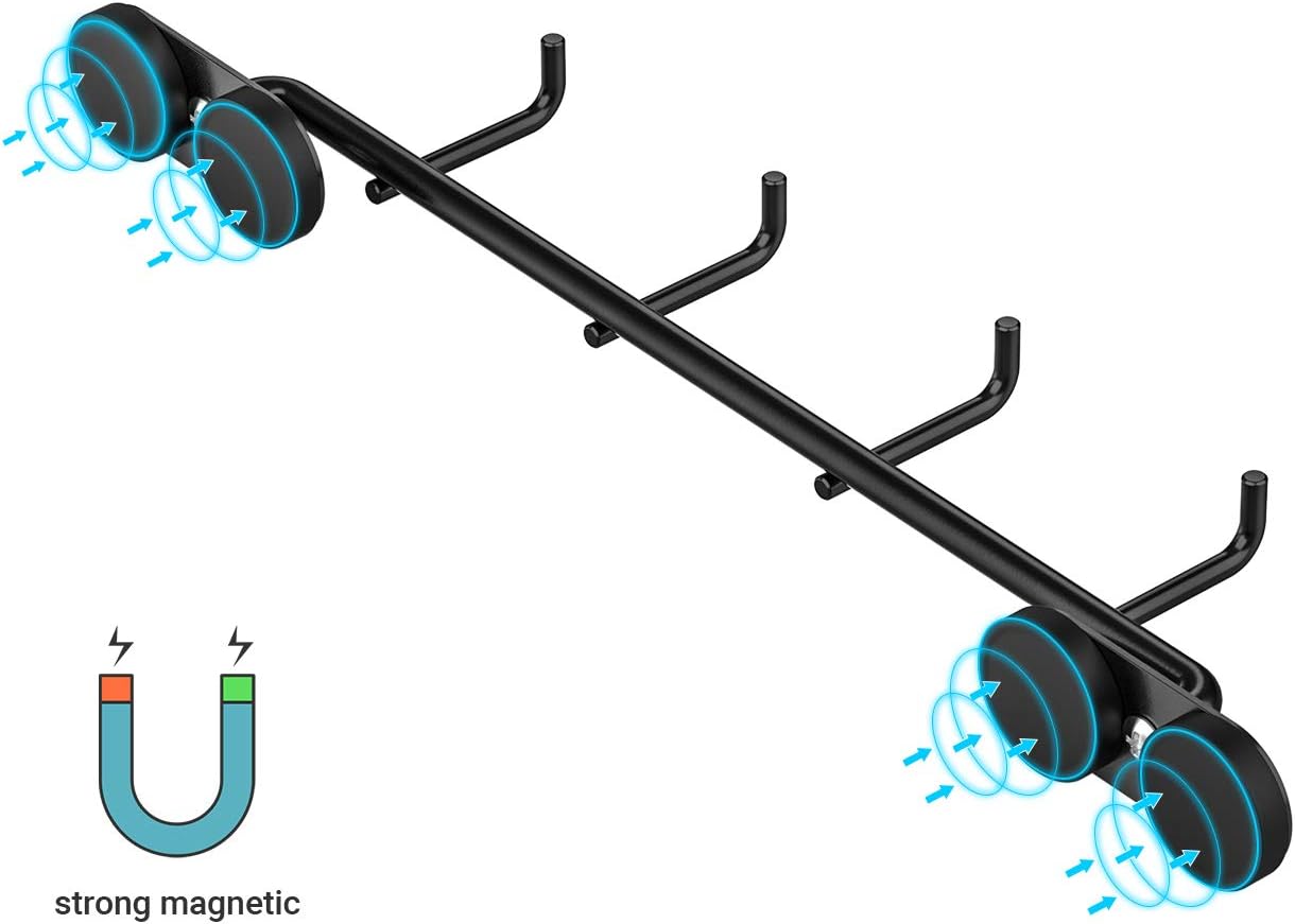 - Classic Design For All Style Of Grill & Kitchen: The magnetic hanging rack will blend in beautifully with any industrial, modern or rustic style kitchen set up, the stylish and classic black color matches all styles of grill and kitchen. Adds beauty and charm to your kitchen.