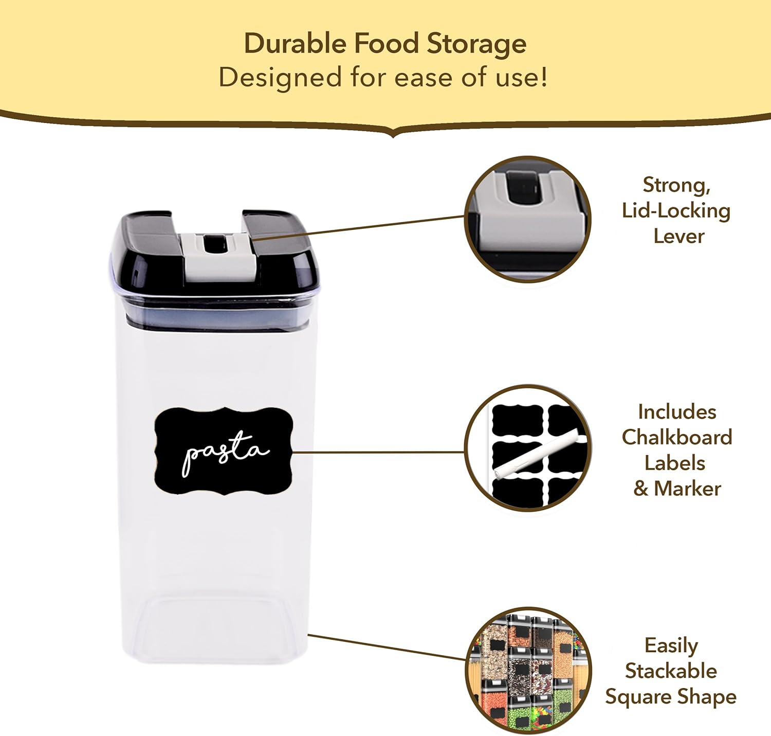 - AIRTIGHT SEAL FOR FRESHNESS: Side-locking lids with premium silicone gaskets form an airtight seal that locks in freshness and keeps out moisture, pests, and stale air. Perfect for maintaining crisp textures and rich flavors, these airtight pantry containers ensure your dry goods stay in optimal condition for longer, reducing food waste and saving money.