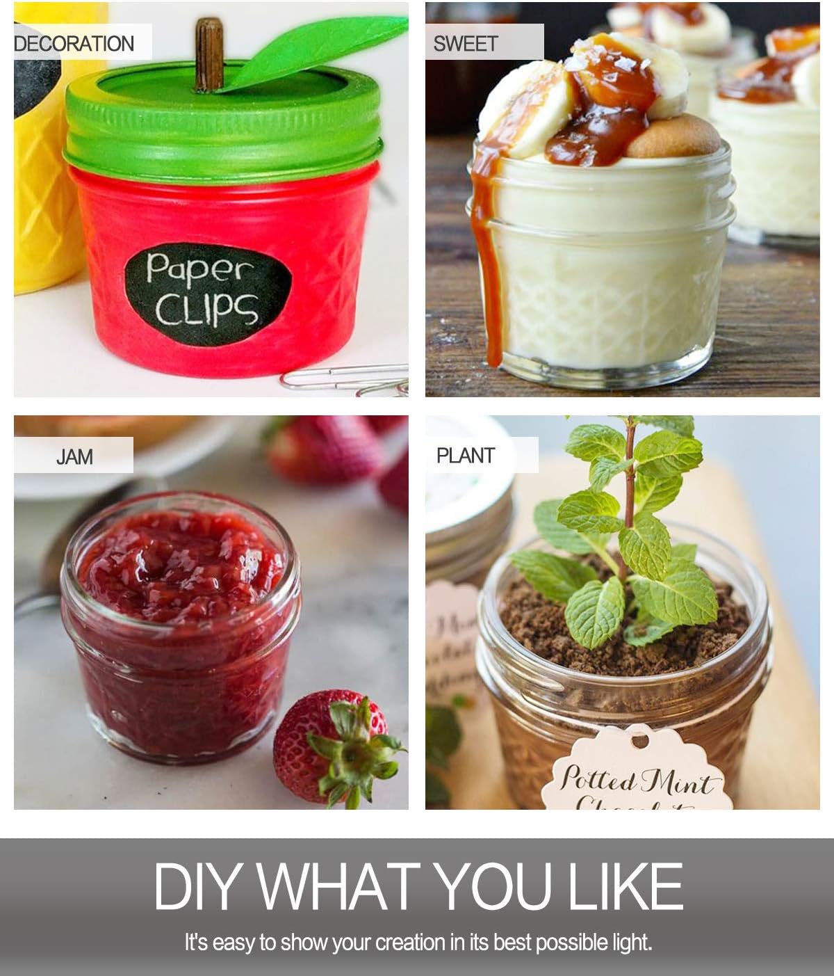 - FOOD GRADE:Each mason jar is made from food grade materials.Great for food storage.Suitable for use in preserving and canning. Safe for the refrigerator and the freezer