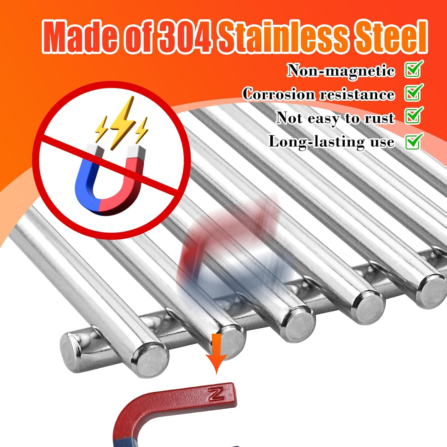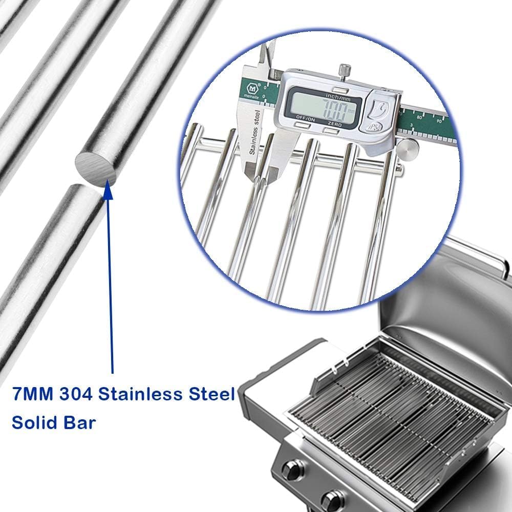 - 【304 Non-Magnetic Stainless Steel】- Grill grates are Well Made, Distribute Heat Well. The diameter of a solid rod is 7mm, which is not as easy to crack, warp, or rust as other materials. Distribute Heat Well will leave a nice grill mark.