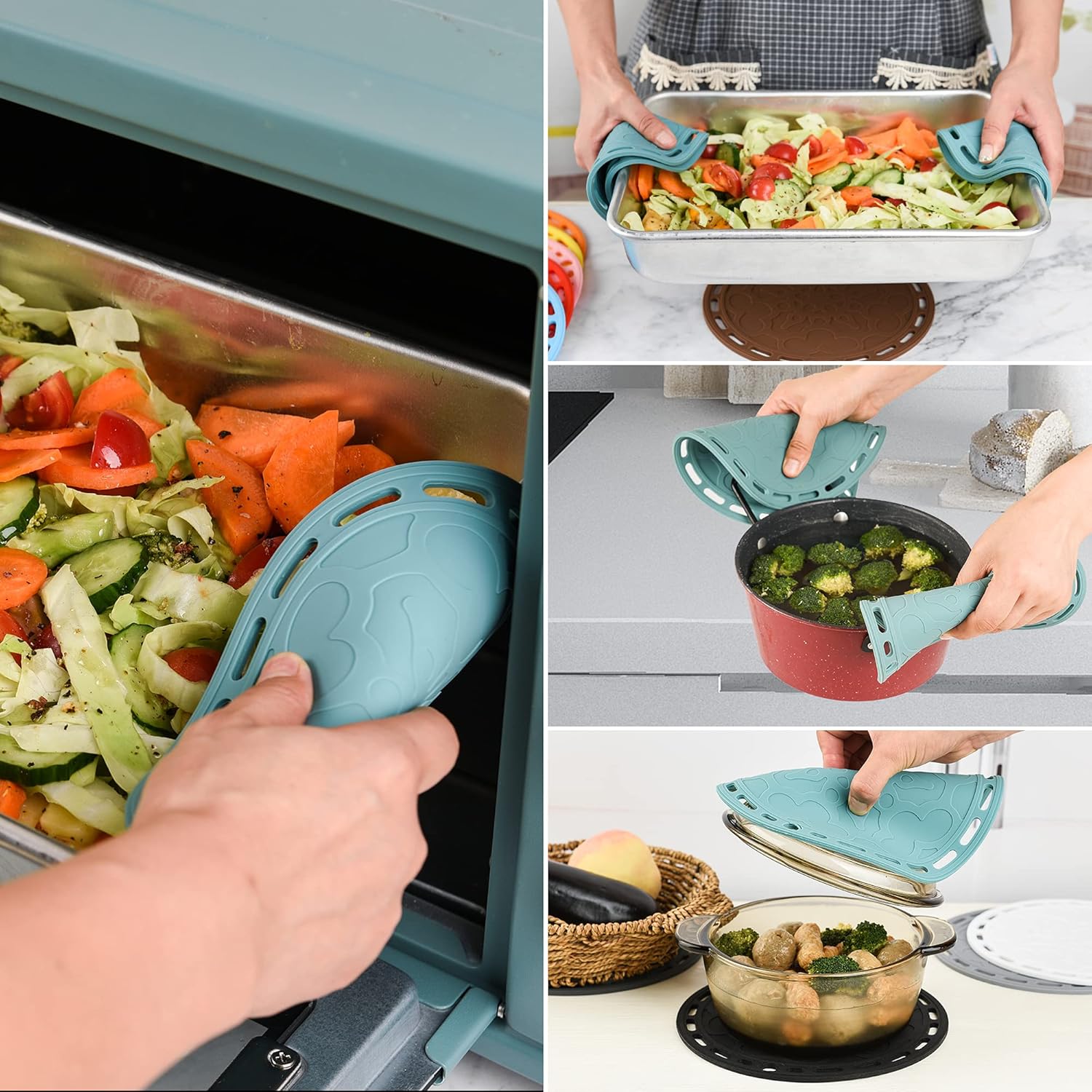 - FOOD-GRADE SILICONE&PERFECT SIZE - Made from 100% BPA free <br>food grade silicone, non-slip,flexible <br>enough to comfortably grab a hot dish or pan,<br> size 7.87x7.87 Inch,Weight:335g per set(thicker and weighter than others).