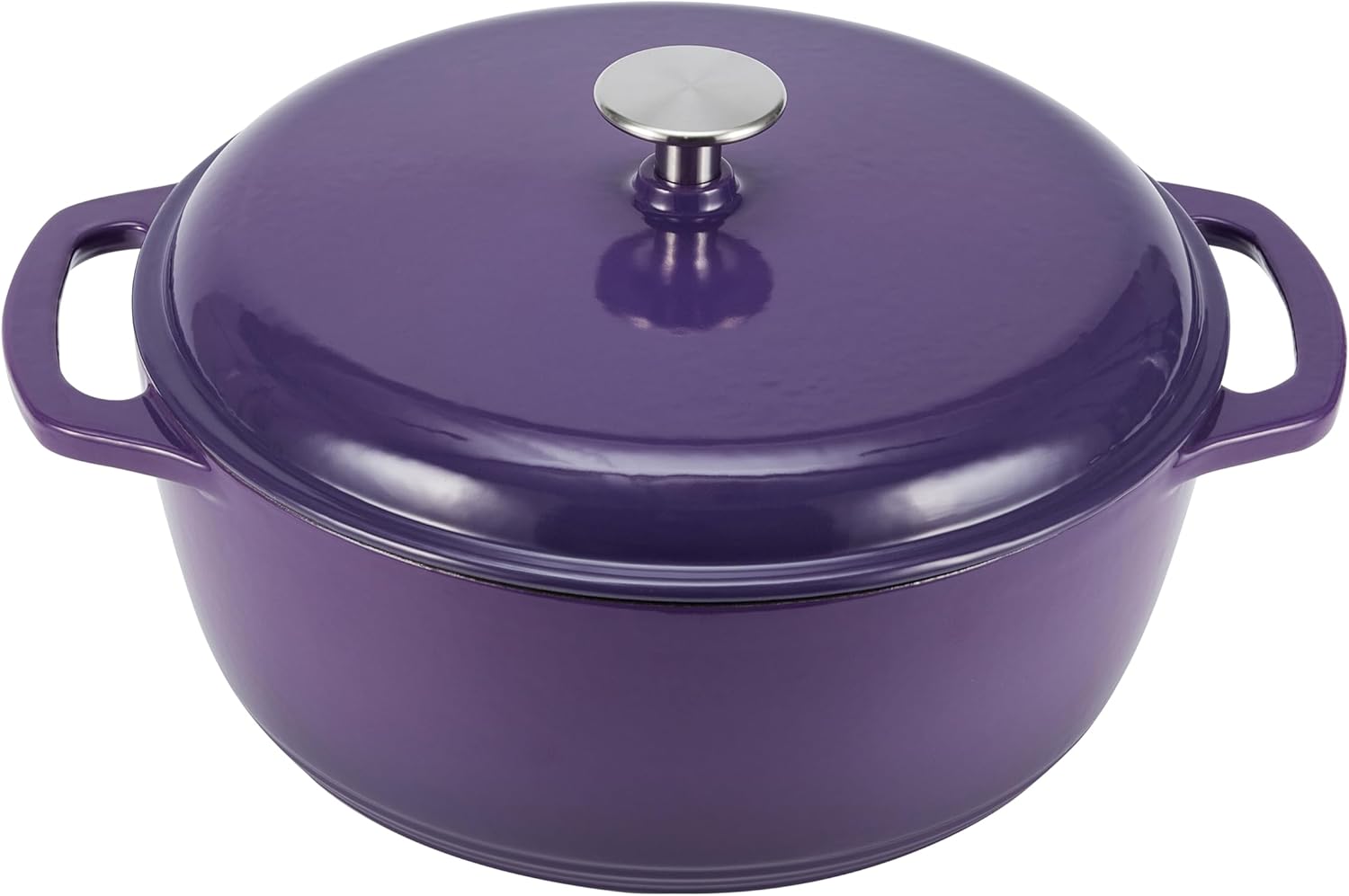 Amazon Basics Cast Iron Dutch Oven Pot with Lid, Enameled, Round, Dual Handles, Heavy-Duty, Medium, 6-Quart, Purple