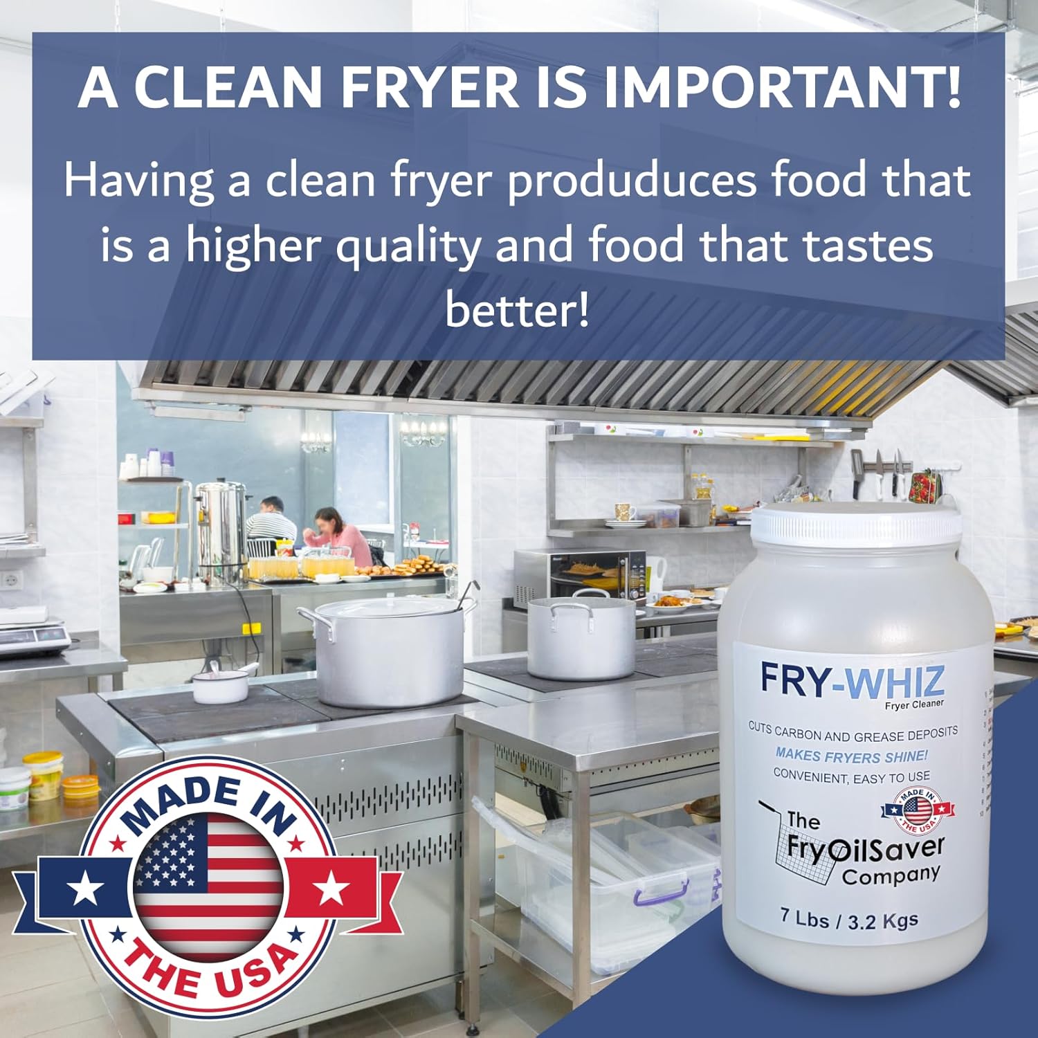 - POWERFUL COMMERCIAL-GRADE CLEANING SOLUTION - Keep your fryer performing at its best with Fry-Whiz Deep Fryer Cleaner, the cleaning solution for professional kitchens and home use. Specially formulated to tackle the toughest cleaning challenges, Fry-Whiz effortlessly removes baked-on grease, carbon buildup, rust, calcium deposits, oils, fats, and burned-on residue. Ideal for deep fryers, griddles, ovens, and other commercial kitchen equipment, this powerful cleaner ensures your appliances are spotless, hygienic, and operating efficiently. Whether in a restaurant, food truck, or catering kitchen.