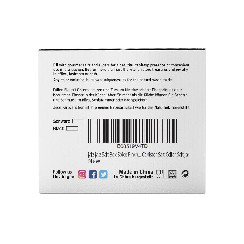 - Zero Chemicals and Wood Lid : renewable salt box salt cellar resource which grows quickly and doesn’t require pesticides, clear cutting, artificial irrigation or replanting. Pefect for home, hotel, cafe, buffet, party etc.