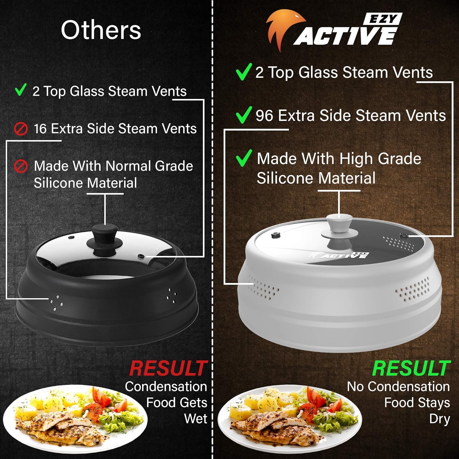 - Enhanced Ventilation: With 98 steam vents, this microwave food cover ensures even heating without soggy food. Keep your kitchen tidy and your microwave clean with this collapsible cover.