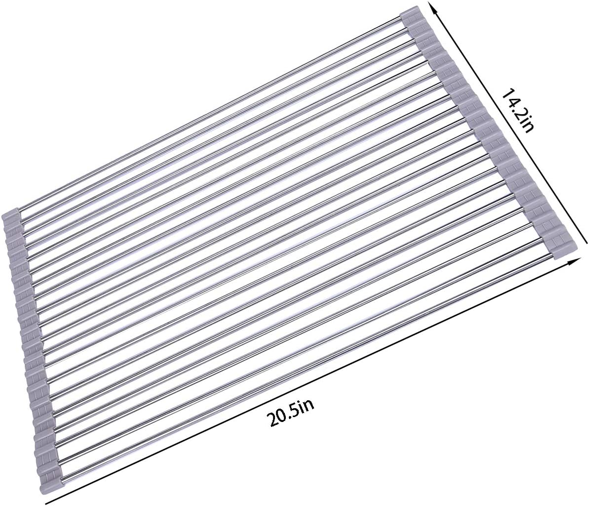 - Newest Displayed Dimension:20.5"(L) x 14"(W) X 0.5'' (H). SUS304 Stainless Still Pipes. Please kindly measure your sink size firstly before purchasing this roll up over the sink dish drying rack! Great Gift for Mother's Day, Father's Day, Christmas Day, New Year, family members and all festivals Gifts