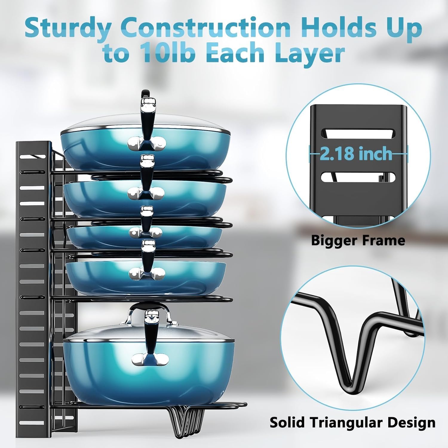 - Super Solid & Sturdy Structure - Upgraded heavy-duty iron construction holds your precious pots/pans steadily and securely; this kitchen cabinet organizer won’t warp, crack, stain or rust, and is super easy to clean; definitely your great helping hand in kitchen organization and storage