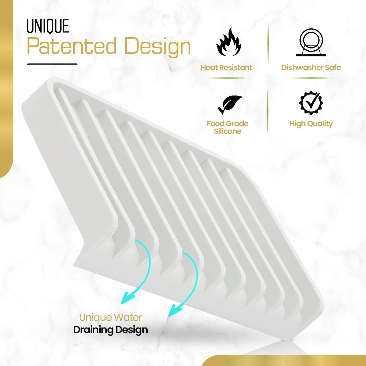 Effilogic Silicone Sponge Holder – Self-Draining Kitchen Sink Organizer, Quick Dry Mat and Counter Protector – Dishwashing Accessories for Sponges, Brushes, and Soap - Large White