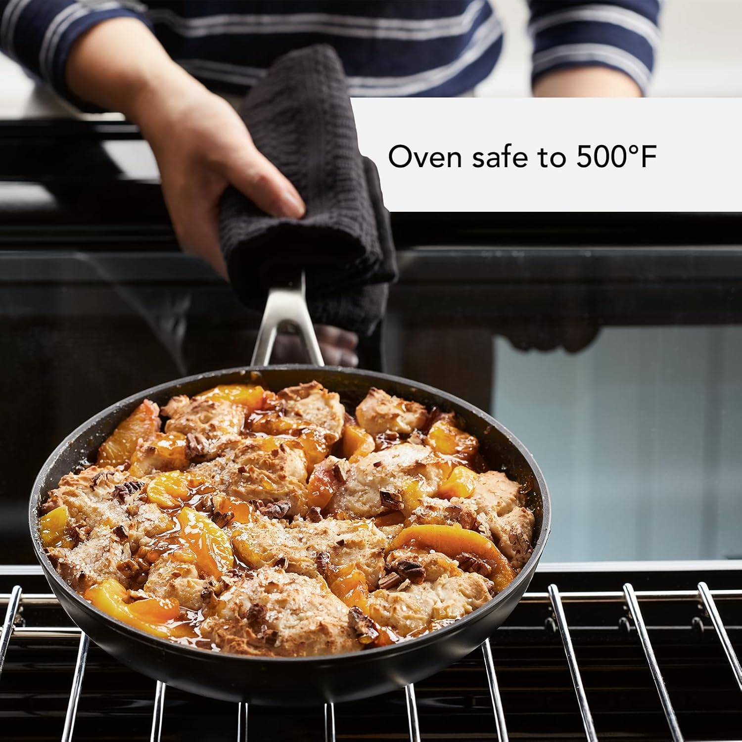 - FINISH IN THE OVEN: Cookware is oven safe to 500°F without lids, 350°F with lids
