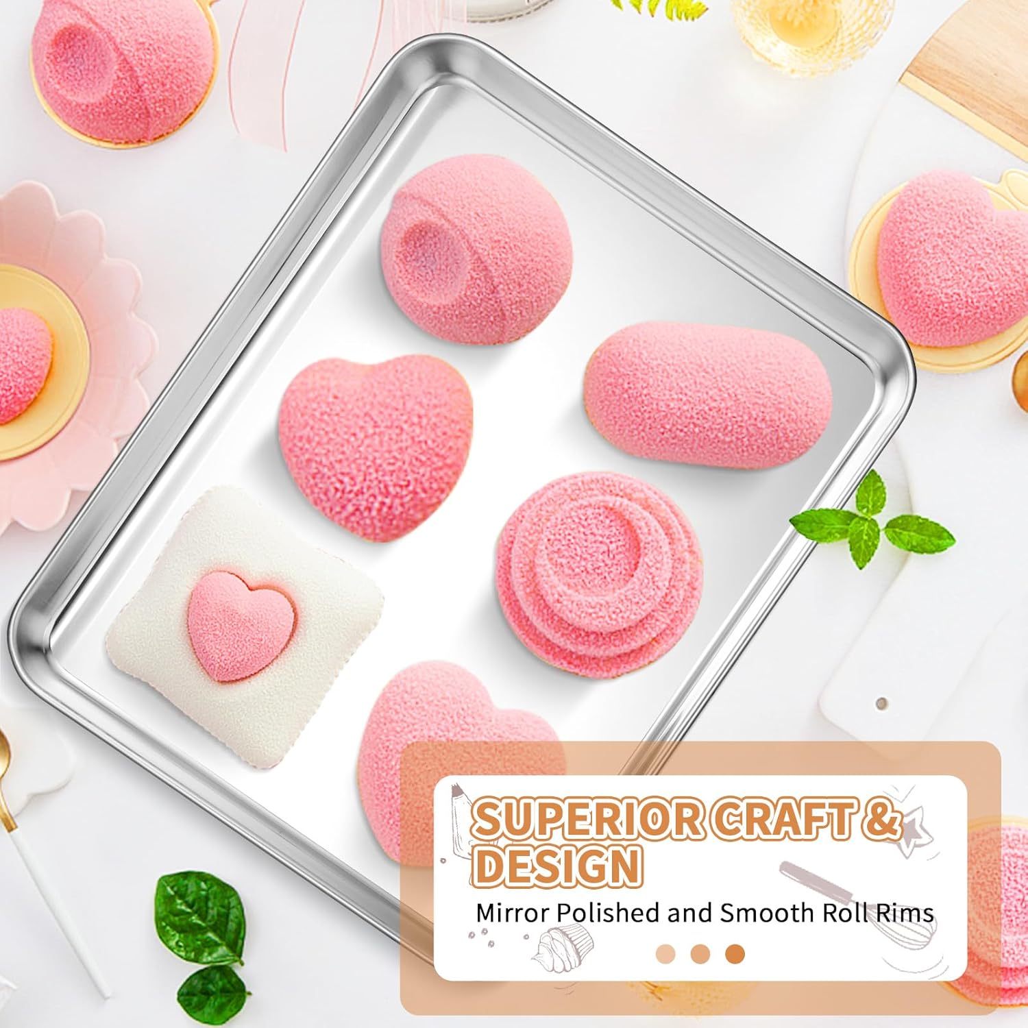 - π πππππππππππ & πππππππ: Our stainless cookie sheet set features its solid construction and feel sturdy enough when holding in hands, nice weight to cook with, rust resistant, high hardness, no distortion, no worries about bending, durable to use for years.