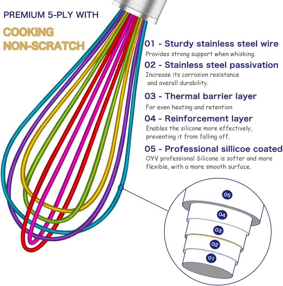 - SEALED, WATERPROOF DESIGN(LASTEST UPGRADE): The OYV whisk features a seamless sealing design at the handle connection, preventing water from getting in. Therefore, it is effortlessly dishwasher-safe and easy to clean