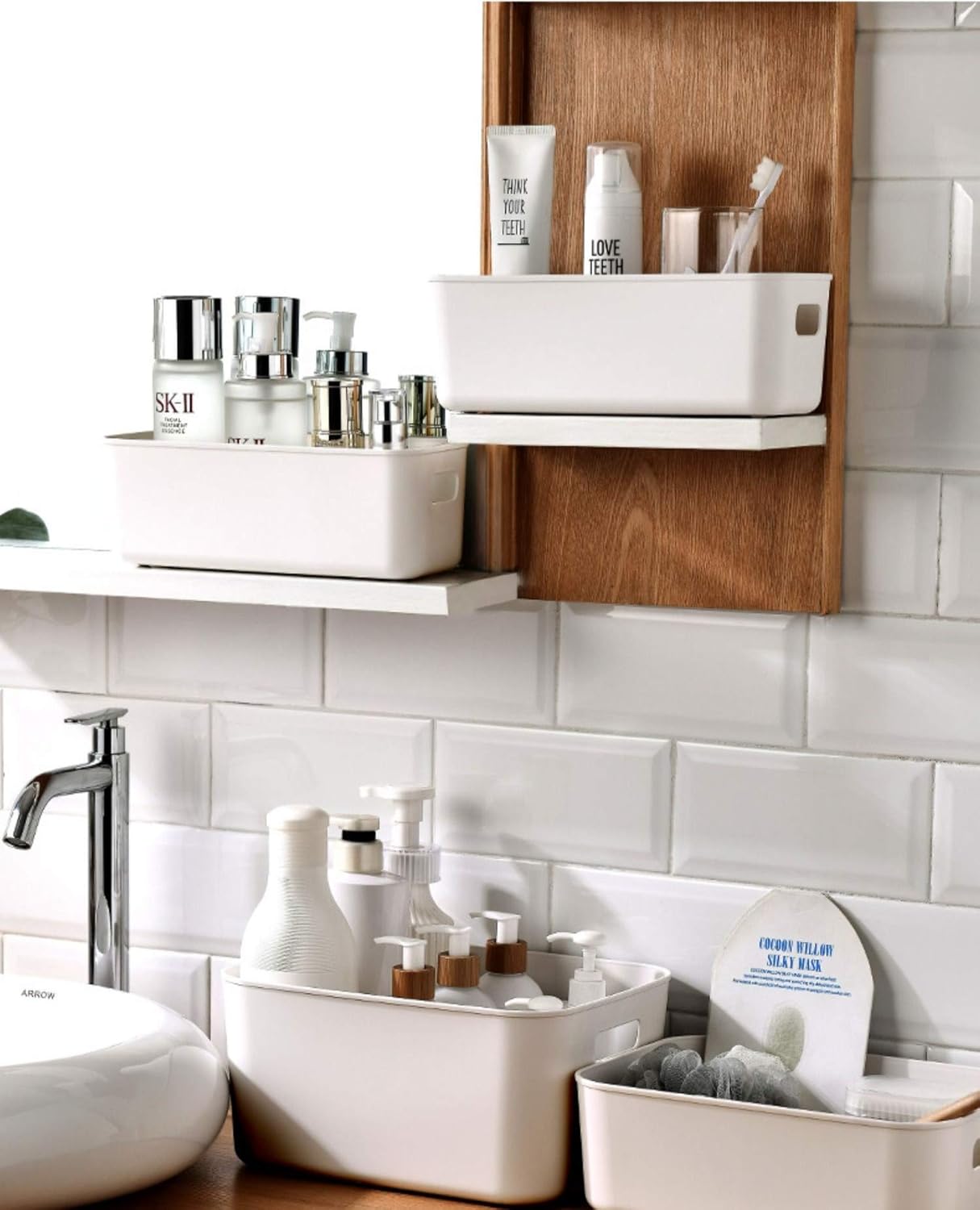 - 5-【Perfect Size】- "11 x 8.6 x 5.5" These storage shelves will organize your bathroom accessories while fitting in with your kitchen organization and storage. Its Flexible Size will make its use as your storage box, under bed storage, mail organizer and storage drawers. Comes in a value pack of 2 !