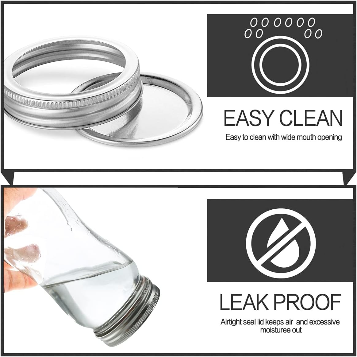 - Airtight Seal -- Our screw-on airtight lid with band is ease of use and storage security in mind; Prevent leaks and keep food fresh while still being easy to open and close. Ideal for Smoothies, juices, syrups, soups, teas, parfaits, and salads.