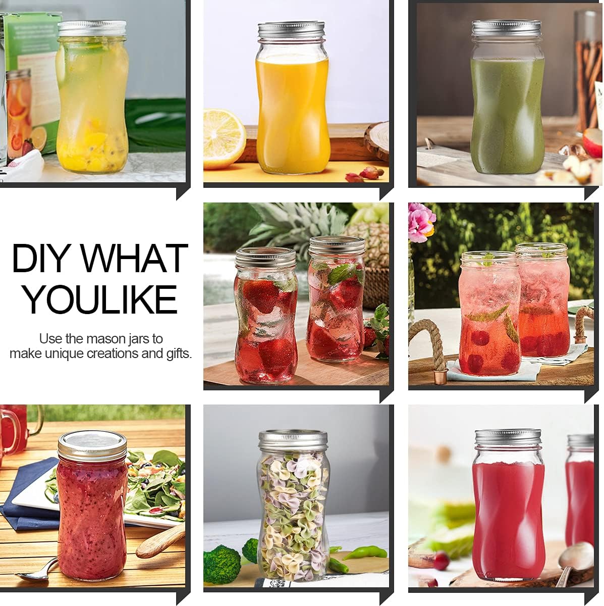 - Versatile & Multipurpose -- Use for jam or jelly, spices, honey, cosmetics or candles and other homemade presents like wedding shower, party favors etc. Suitable for decorations and crafts, you can use the mason jars to make unique creations. Try filling with bath salts, body butter, candy, nuts, buttons, beads, lotions, essential oils and more...