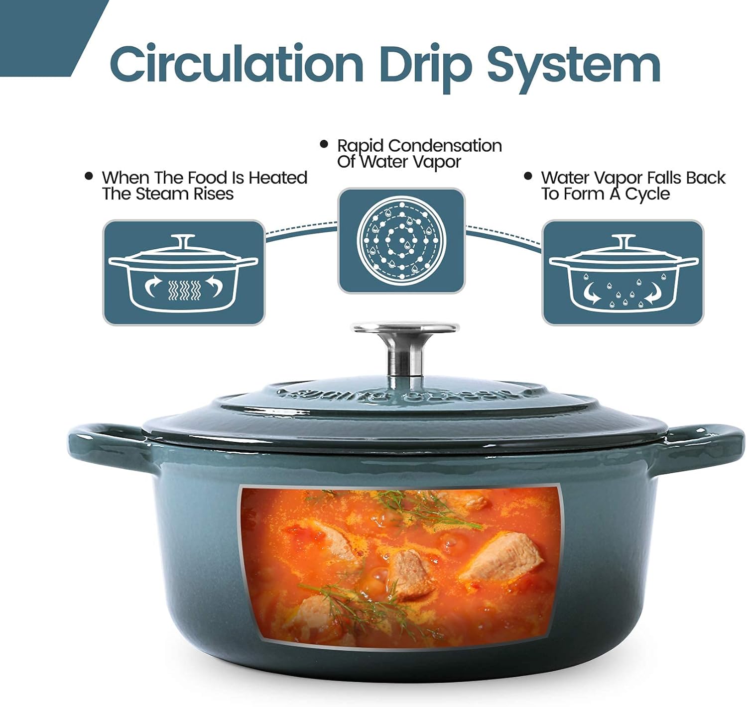- Self circulation water locking: The dutch oven pot cover is thick and well sealed, which makes it difficult to lose water