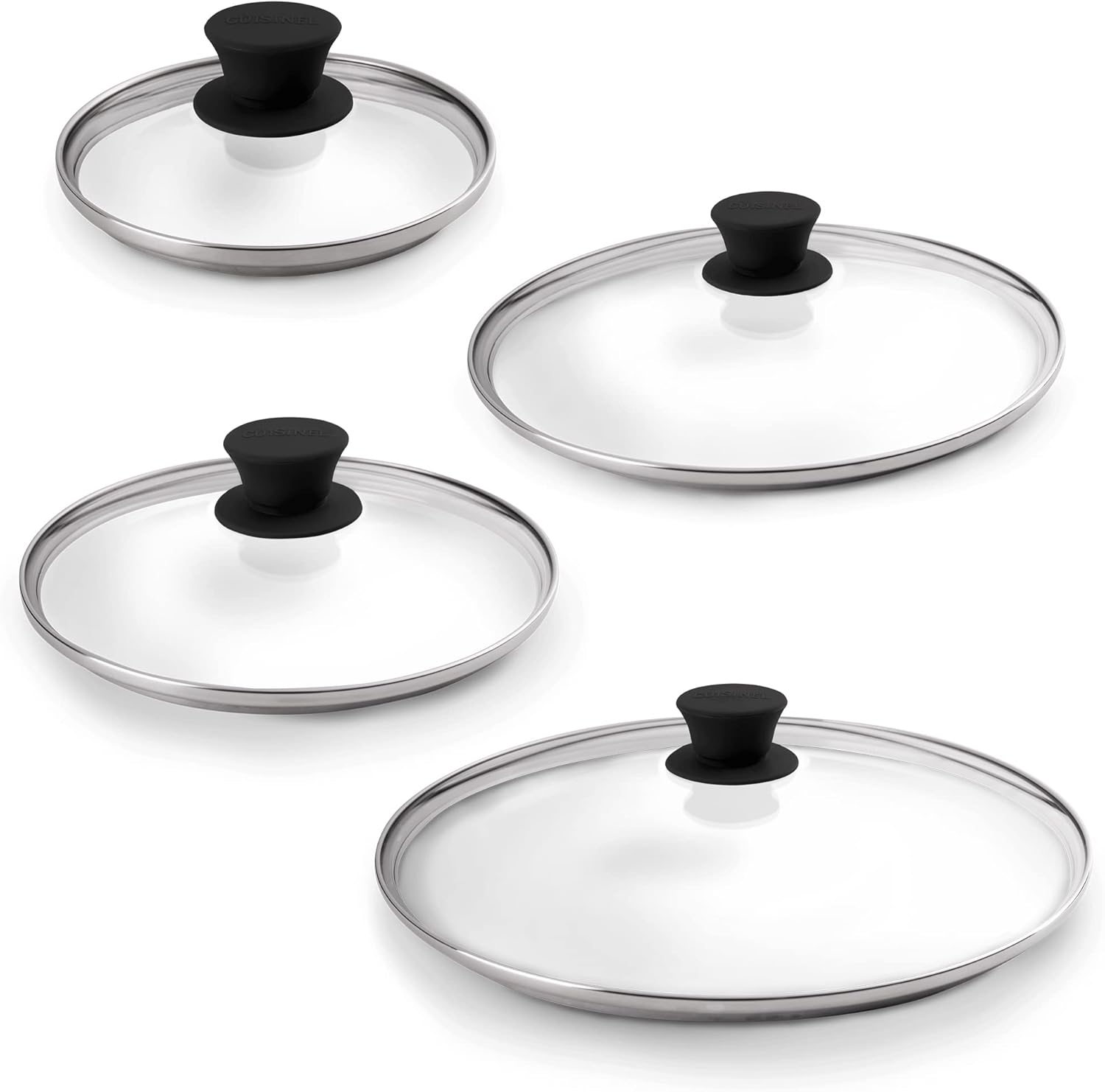 - STAINLESS STEEL REINFORCED RIM: Stainless rimmed lid adds an additional layer of reinforcement to these already sturdy tempered glass covers - making them break-resistant and shatter-resistant - and provides a comfortable seal to lock in steam, flavor and splashes. Smooth stainless steel also keeps cookware safe from scratches from the glass - while adding a dash of style and sophistication to your cookware arsenal.