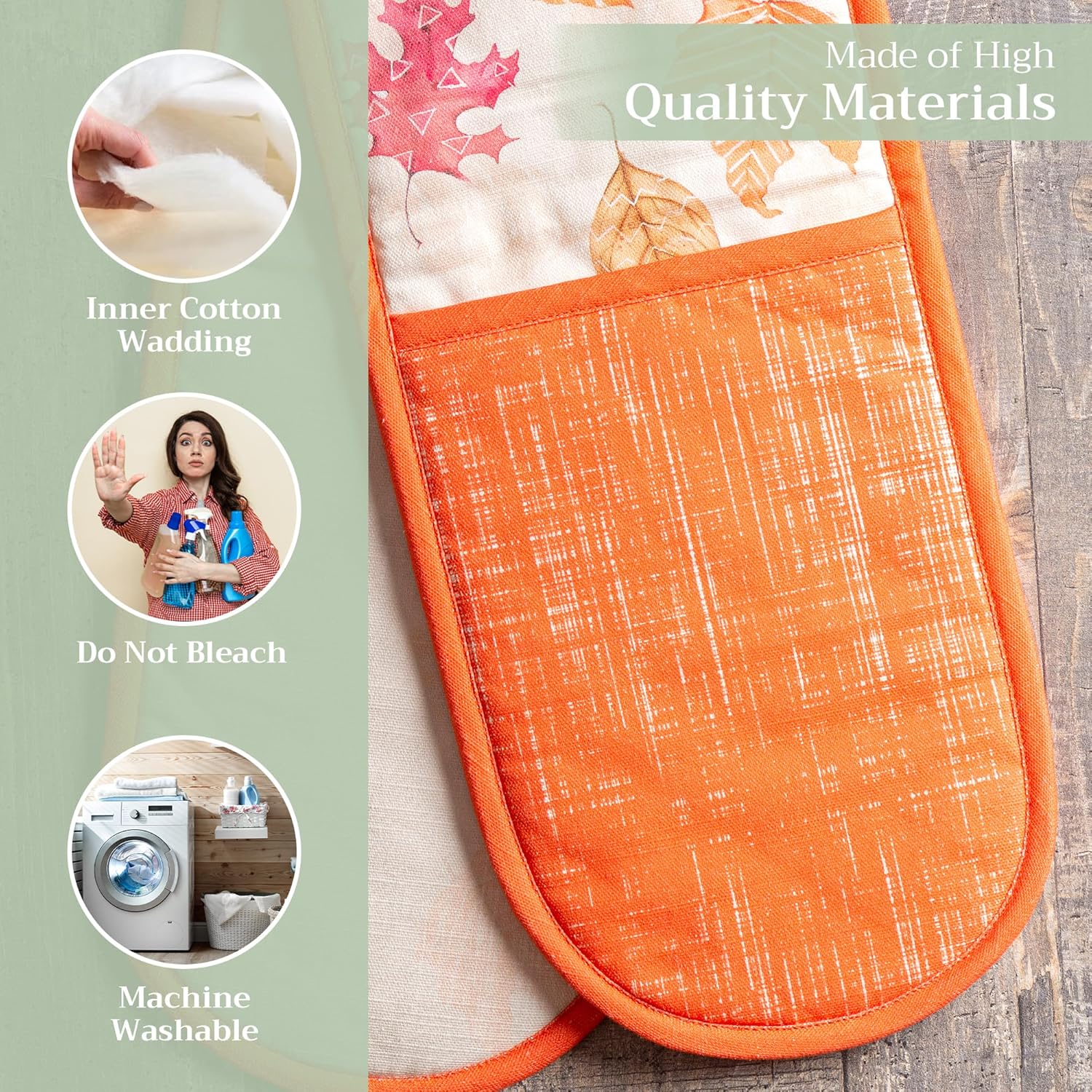 Maison d' Hermine Double Oven Mitts 100% Cotton 7"x35" Double Oven Mitt Heat Resistant BBQ Cooking Gloves with Loop, Baking, Grilling, Home, Kitchen, Handling Hot Pans (Colors of Autumn)