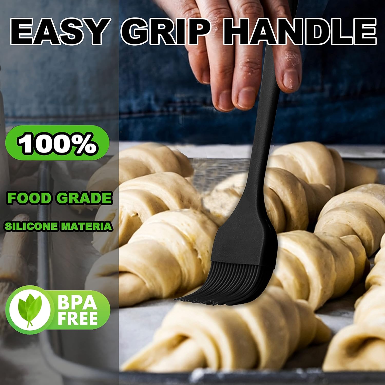 Anaeat 2 Pack Silicone Basting Pastry Brushes - Heat Resistant Brush with Soft Bristles, Hygienic One-Pieces Design, Marinade Brush Great in Baking for Spreading Oil Butter Sauce BBQ Grill (Black)