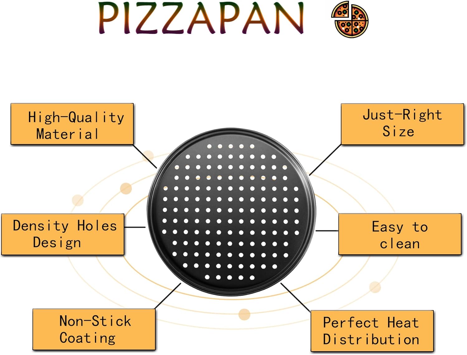 - High-quality Pizza Pan: The surface of the carbon steel pizza pan is designed with a non-stick coating, which is easy to release food and clean the tableware. It has good thermal conductivity and has multiple holes on the surface to help you quickly and evenly transfer heat to your food.