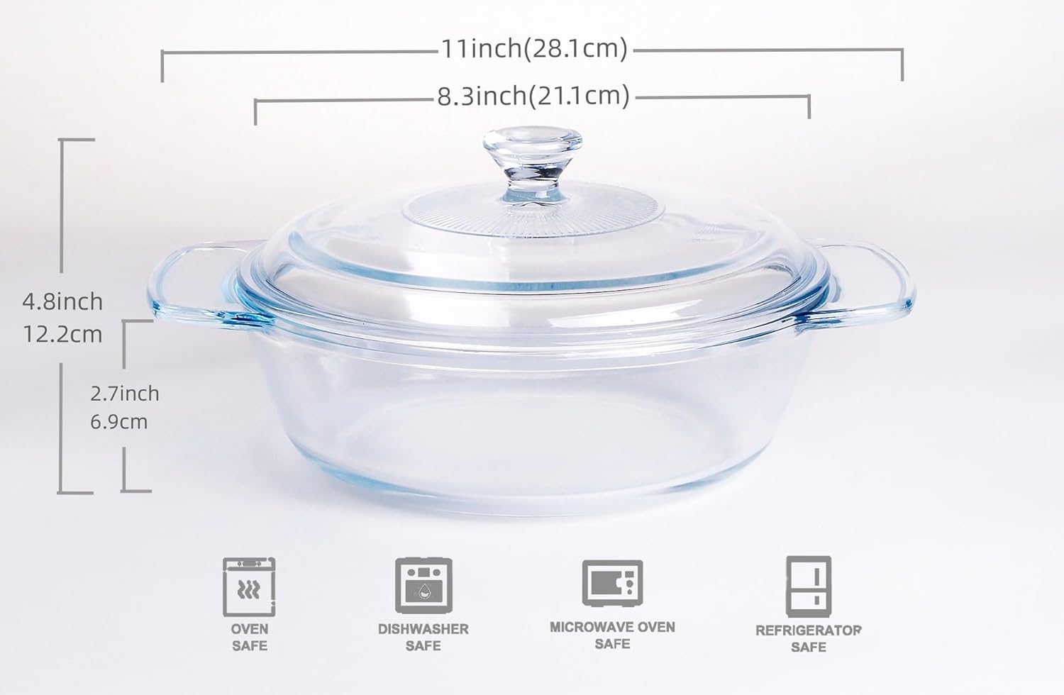 - ✅ Casserole Dish with Handles: The casserole dish lid with handle, easy to use, will work well for kitchen, dorms and camping. The glass lid is not tempered, so it cannot be put into the oven, microwave oven.