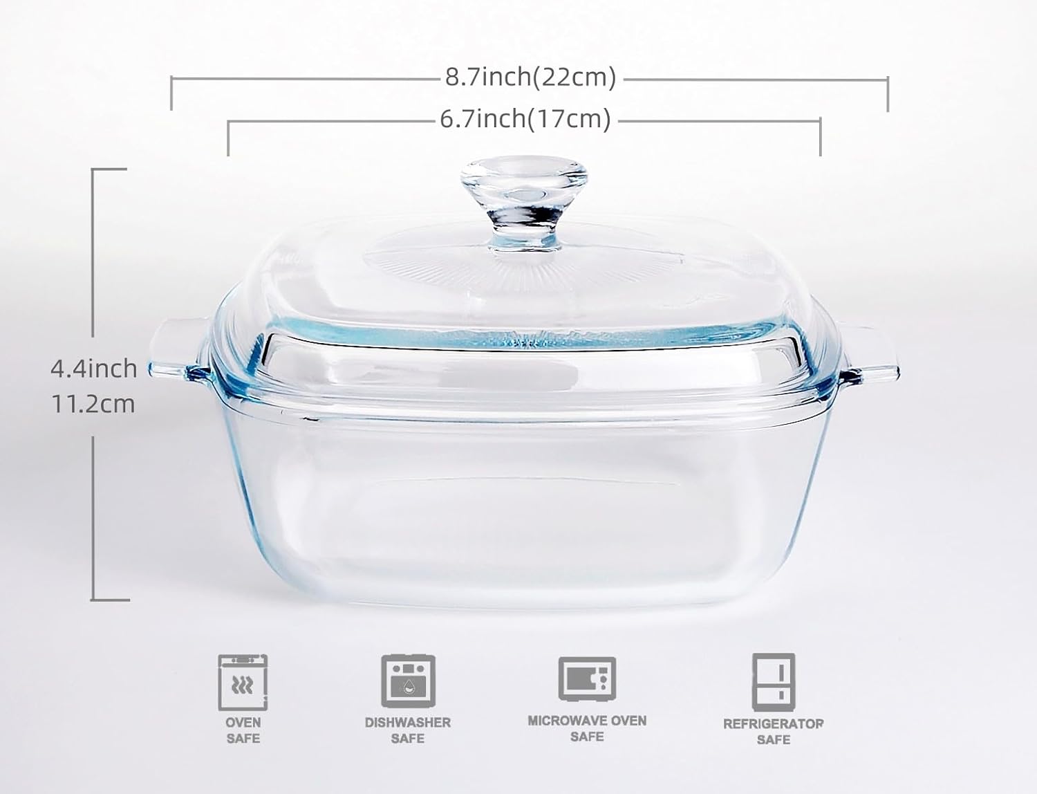 - ✅ High-Temperature Resistance: An integral forming process is adopted in this glass casserole with lid, seamless and smooth, it is durable and strong, this casserole dish is safe to use in microwave, oven, Refrigerator, Freezer & dishwasher.