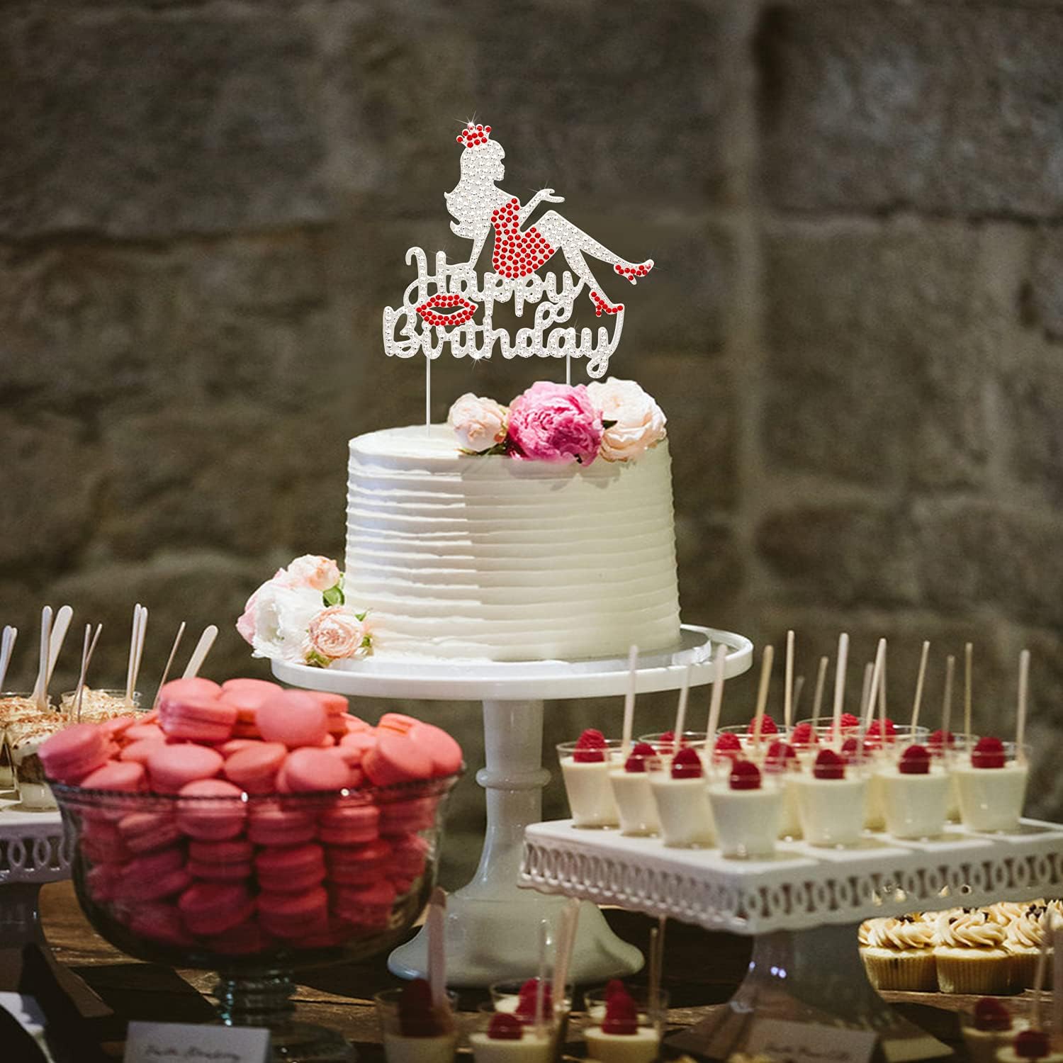LINGTEER Happy Birthday Crown Queen Lady Rhinestone Cake Topper - Cheers to Makeup Spa Birthday Party Cake Centerpieces Decorations Gift Sign - Red.