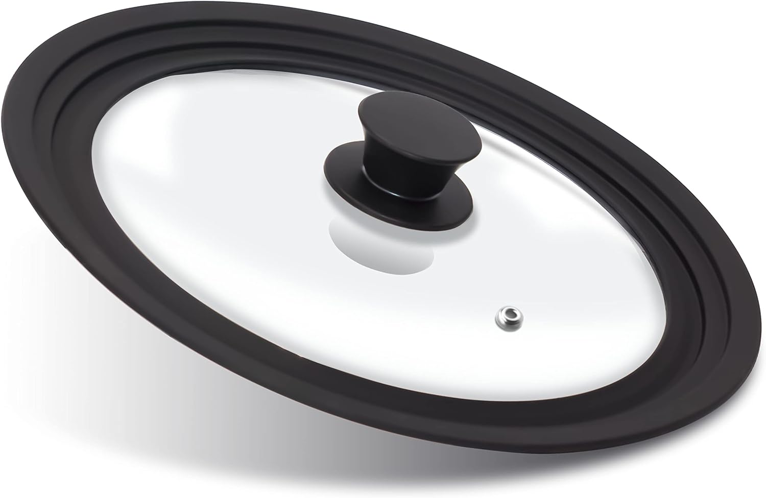 Anaeat Silicone Universal Lid for Pots, Pans and Skillets - Tempered Glass Covered with Heat Resistant Silicone Rim Fits 11", 12" and 12.5" Diameter Cookware -Easy to Use Replacement Frying Pan Cover