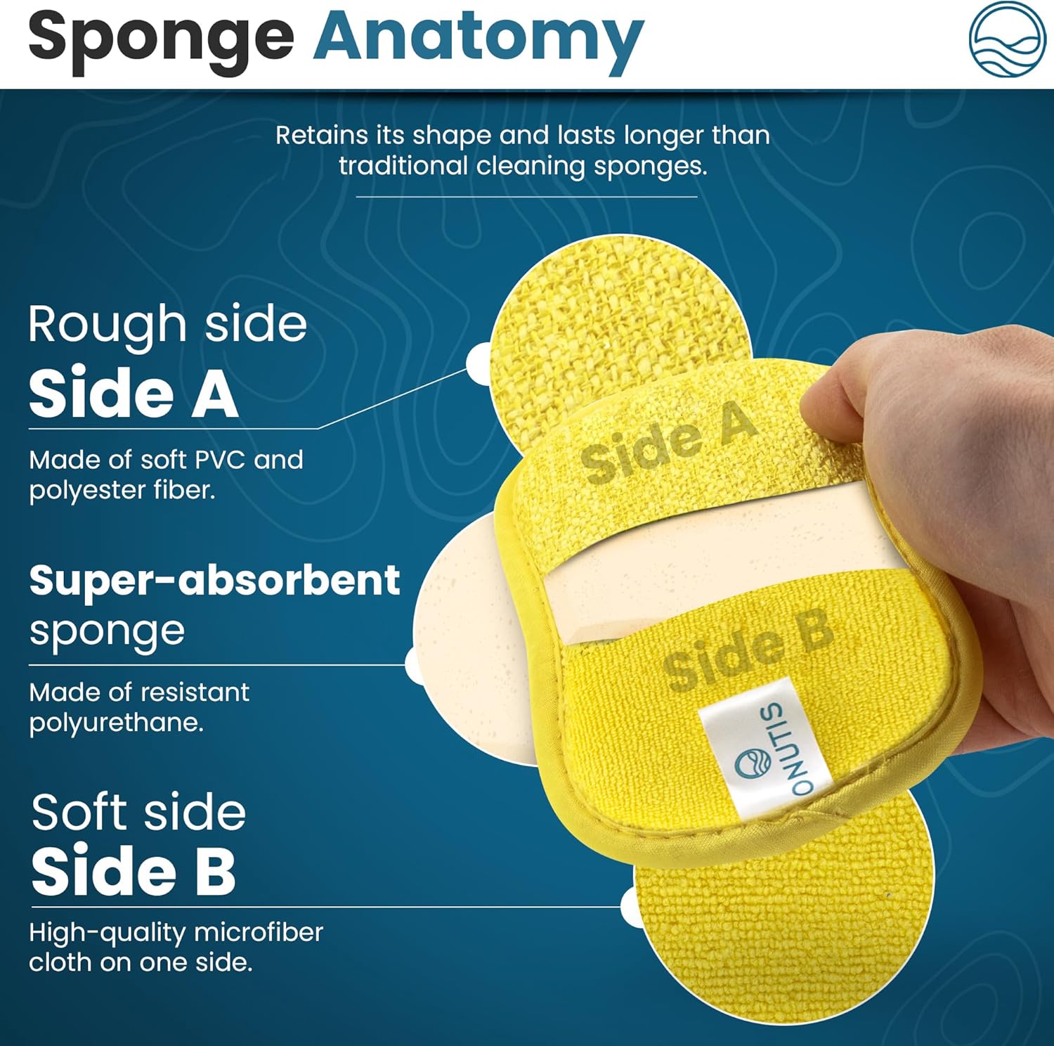 - Two-Sided, Twice the Power: Most cleaning sponges fall short—either too rough for delicate surfaces or too weak for stubborn grime. That’s where Onutis kitchen sponges shine. With a soft side for gentle scrubbing and a textured side for tough stains, our dish sponges are perfect for everything from dishwashing to heavy-duty cleaning jobs!
