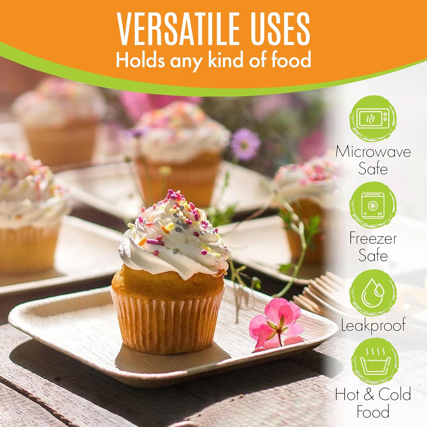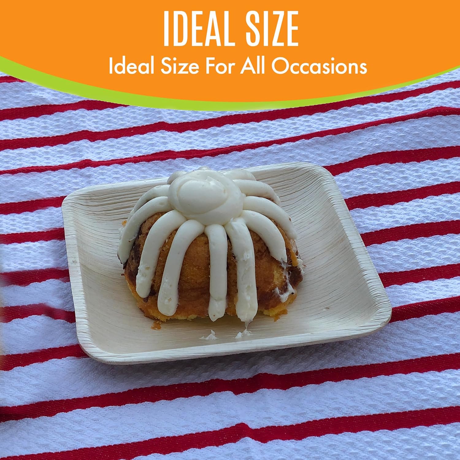 Raj Palm Leaf Bulk Plates 6" 400 Square Plates like Bamboo plates Disposable, Decorative Compostable Tableware for wedding, Lunch, Dinner, Birthday, Camping, Outdoor BBQ, Picnic