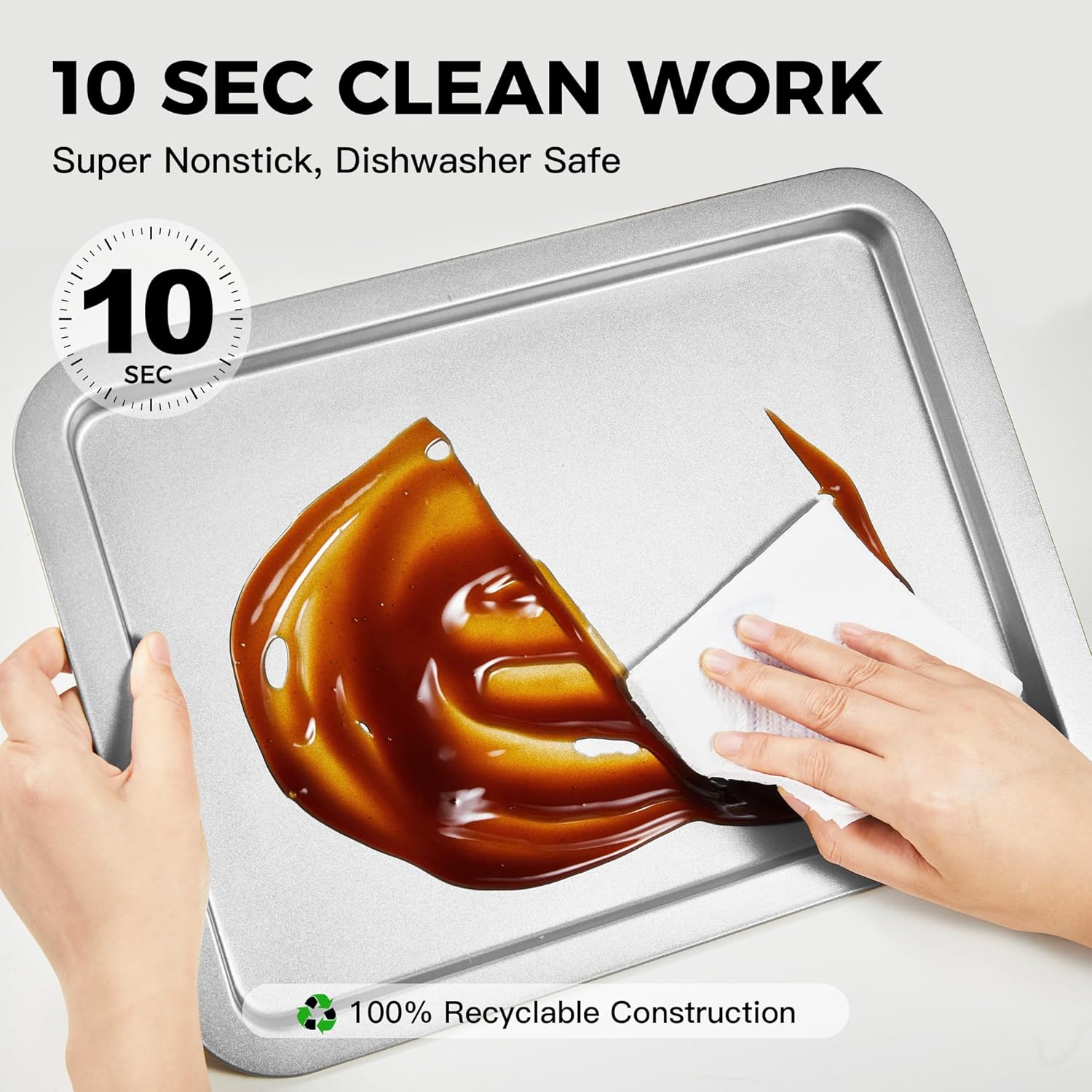 - 🍪EXQUISITE CRAFT - The cookie sheets for baking nonstick set is made of carbon steel, which is sturdy and durable. Compared with glass or ceramic sheet pan, it is unbreakable. One-piece seamless design with no dead ends and rounded corners for greater safety, Smooth curved edges prevent finger injuries