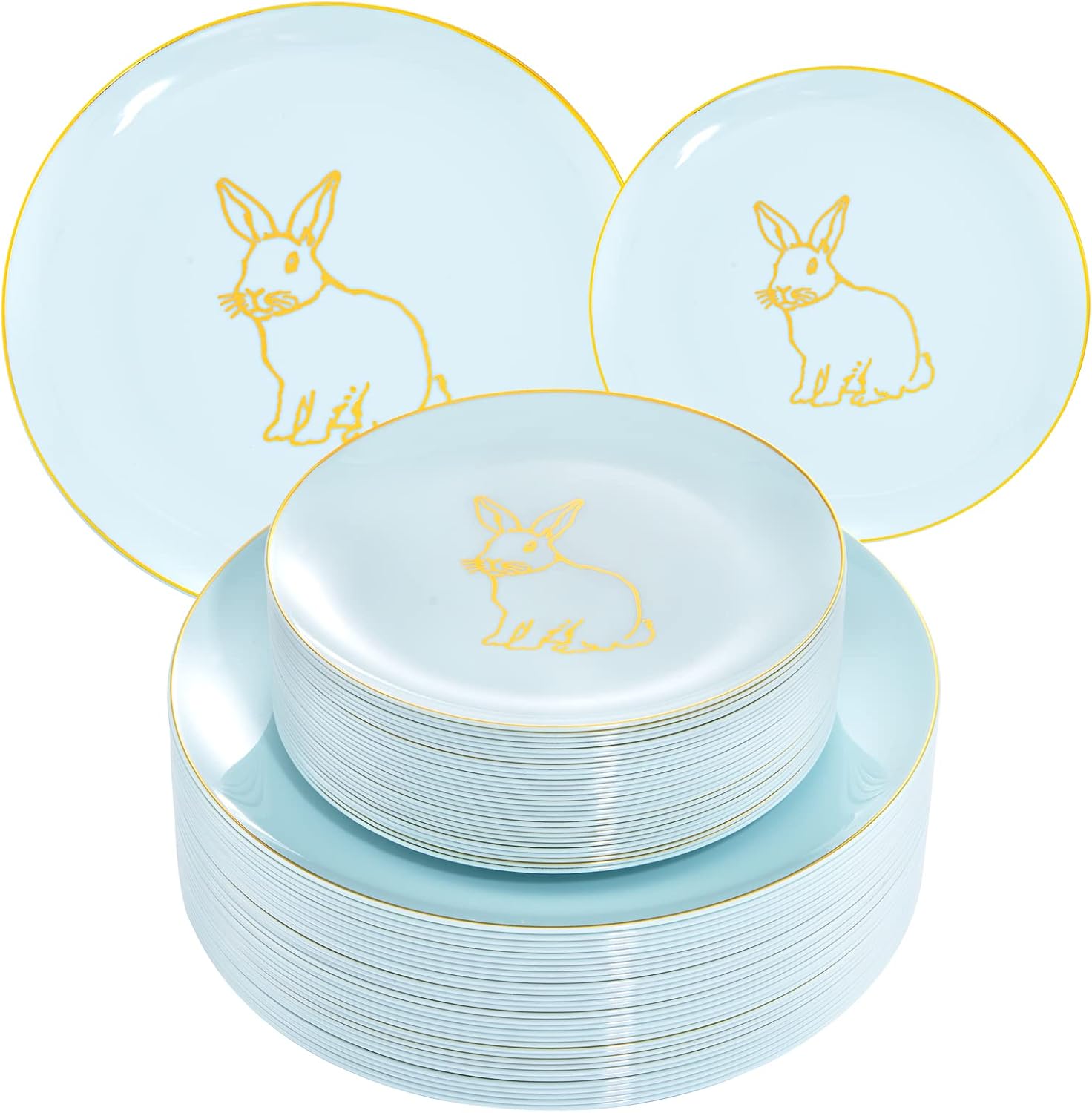 KIRE 60 Pieces Easter plates with Gold Bunny-Mint Green Plastic Plates include 30Pieces 10.25inch Dinner Bunny and 30Pieces 7.5inch Green Dessert/Salad Plates for Easter Day