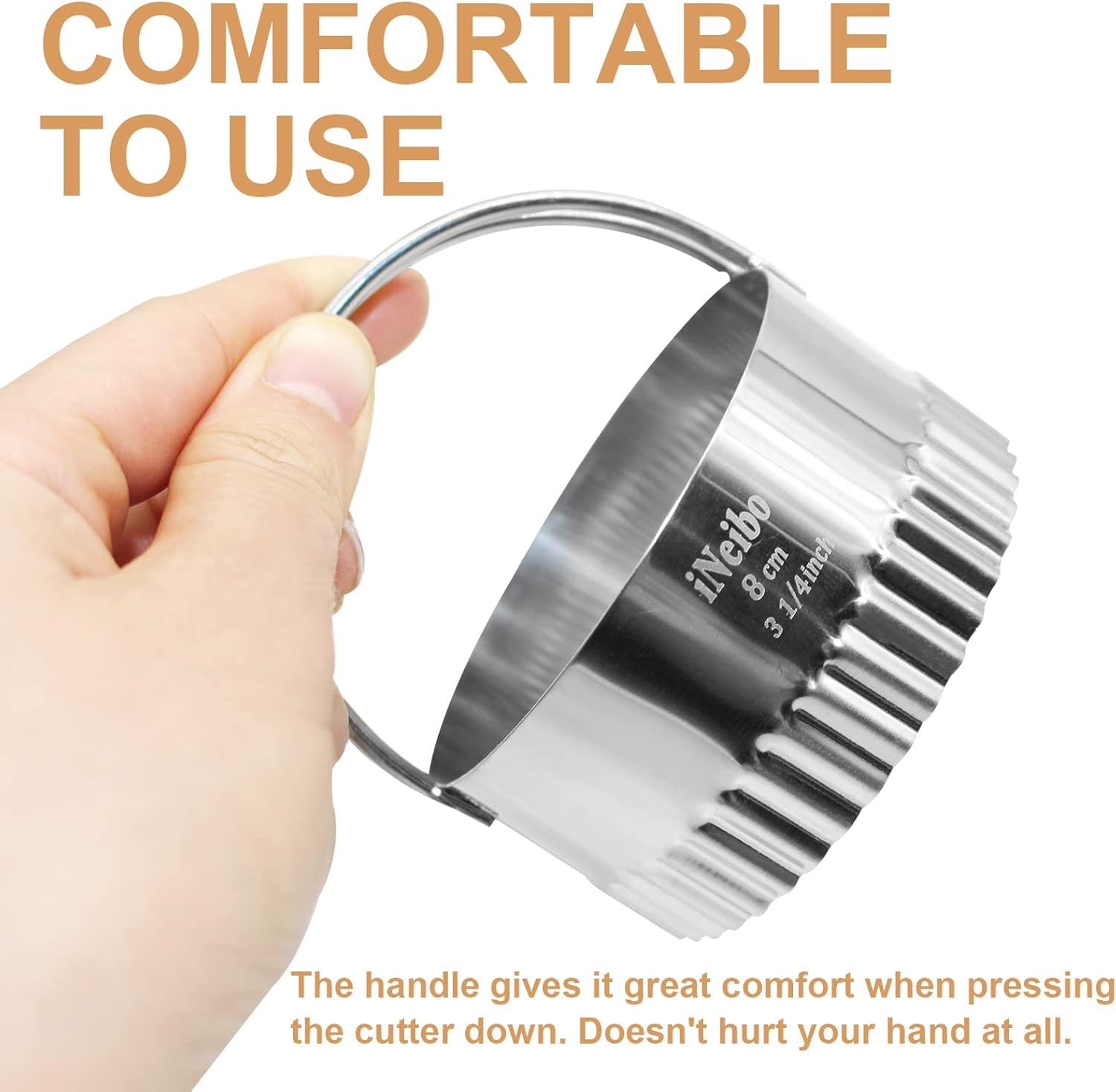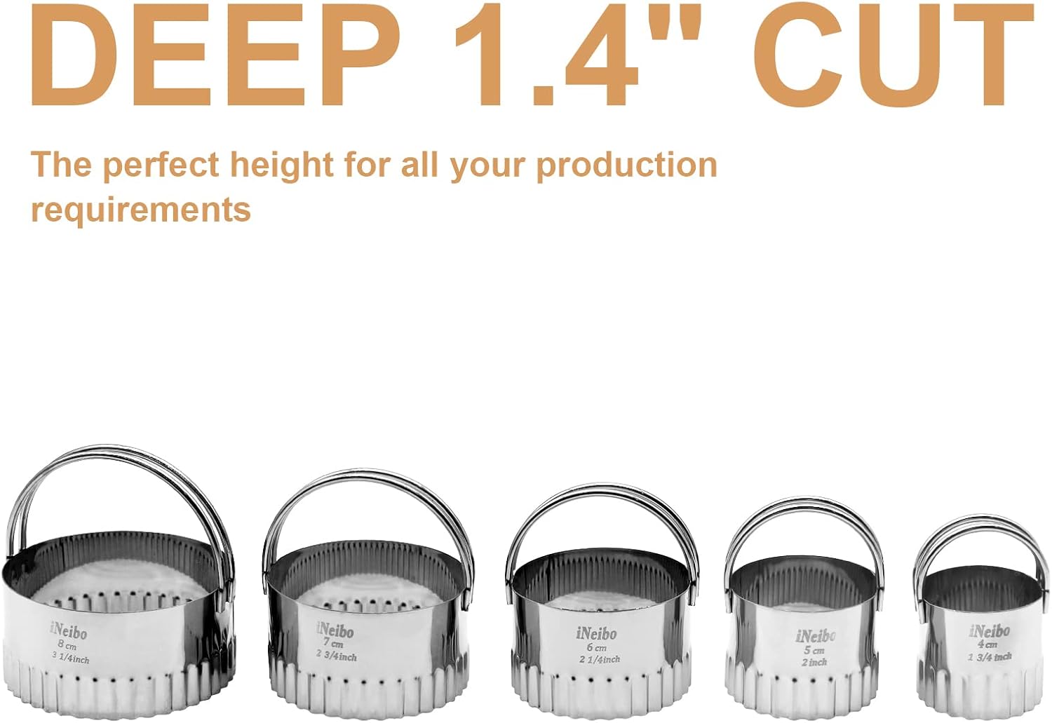 - [5 Different Sizes of Cookie Cutters]: Various sizes can meet your different needs, the diameters are 4, 5, 6, 7, 8 cm, 1 3/4, 2, 2 1/4, 2 3/4, 3 1/4 inch.