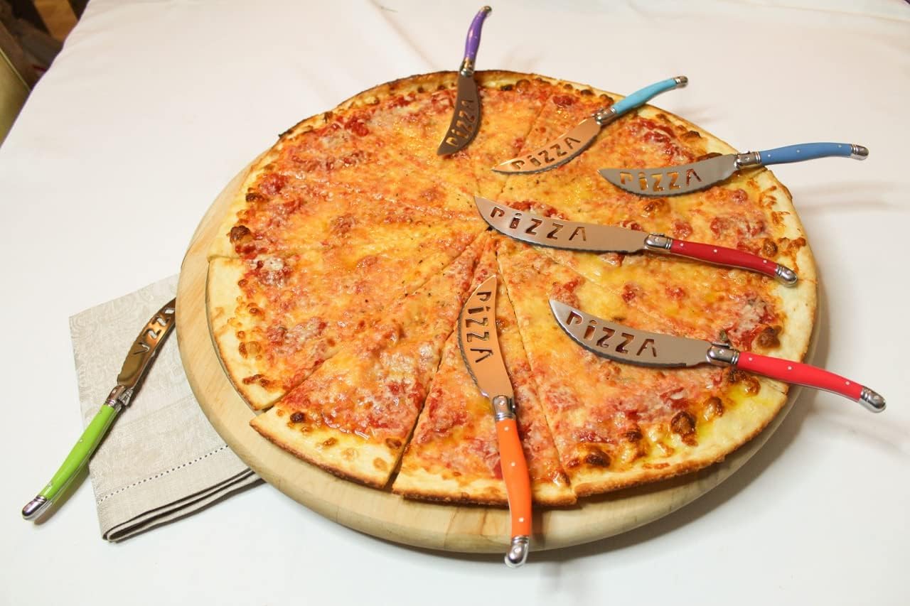 - Luxurious Pizza Knife Set (7 Piece): Bring out your inner chef with this 7-piece pizza knives set for kitchen. Our rainbow knife set includes 6 individual Laguiole pizza knives and 1 large pizza slicer. Whether you’re setting out to create the ultimate pizza or simply ordering in, our kitchen knives will let you slice and dice in style.