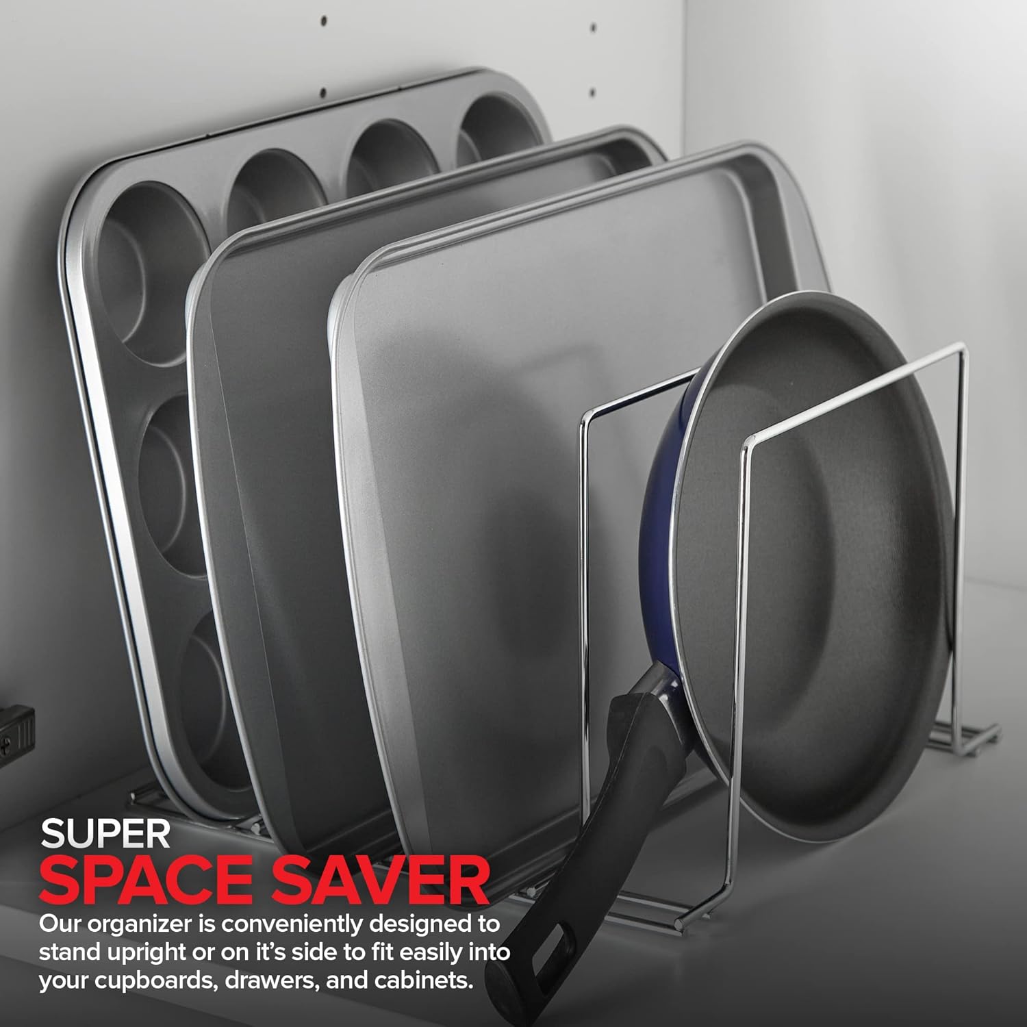 Stock Your Home Chrome (2 Pack) Steel Baking Pan Organizer Rack for Cabinet or Counter, Holder for Kitchen Cutting Boards, Pot Lids, or Cookie Sheets - Rust Proof Wire, Drying Storage
