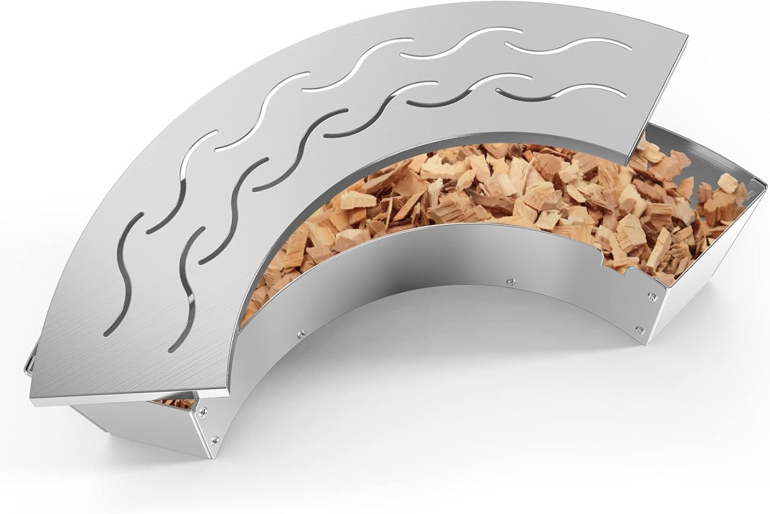 - 【Large Capacity for More Efficient Smoking】Our smoker box has larger space than other square/rectangle version, you don't need to refill wood chips time by time. Fan-shaped match perfectly for most charcoal grill and kamado ceramic grills.