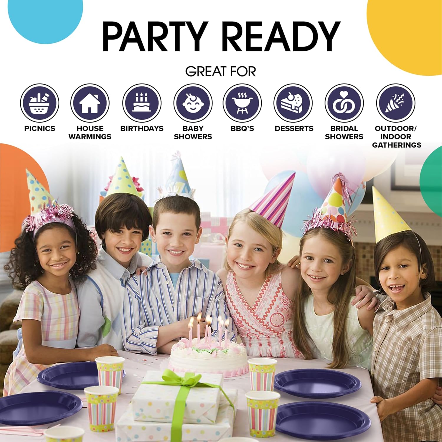 - Health & Safety: Our Navy plastic plate set is made with food safe materials, ensuring the health and safety of your guests. Whether it's for a birthday party or a picnic, you can trust that these disposable plastic plates meet the highest standards of hygiene, providing peace of mind for you and your loved ones.