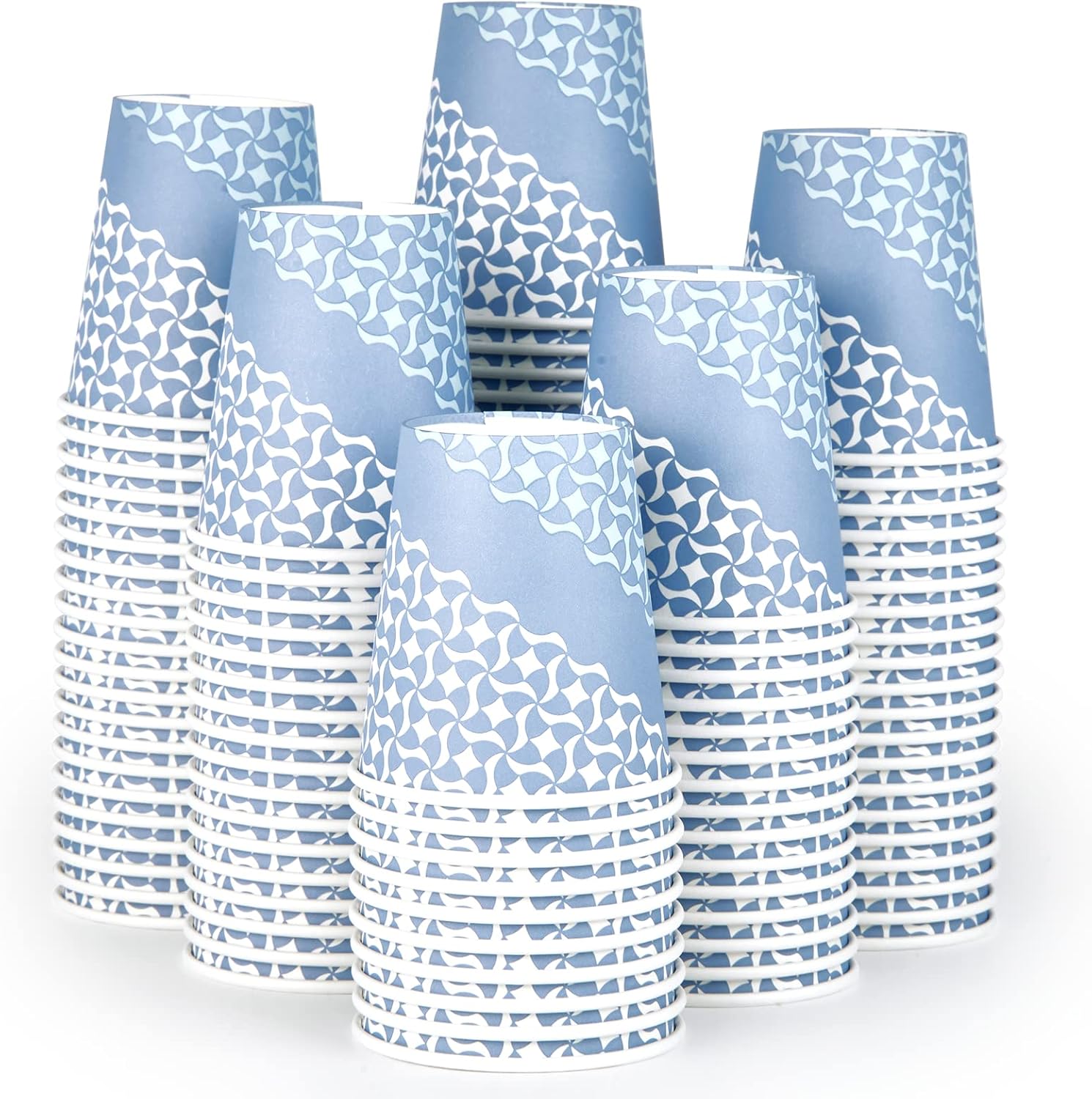 - Blue Paper Cups: This package contains 240 counts 10 oz paper coffee cups, classic blue color cups printed with unique patterns. suitable for any use, such as a home, office, or restaurant