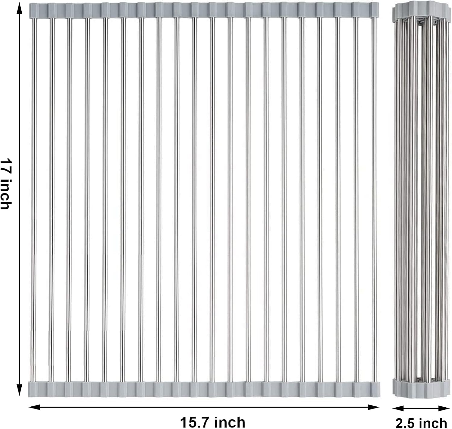 - Size : The size of the over sink dish drying rack is 17"x15.7". And you can also fold or cut the collapsible sink drying rack according to your sink size for better use. Please kindly measure your sink size firstly before purchasing this roll up dish drying rack over sink. A great helper for home accessories and kitchen necessities. With this small kitchen gadget, your kitchen and home will be much tidier and comfortable