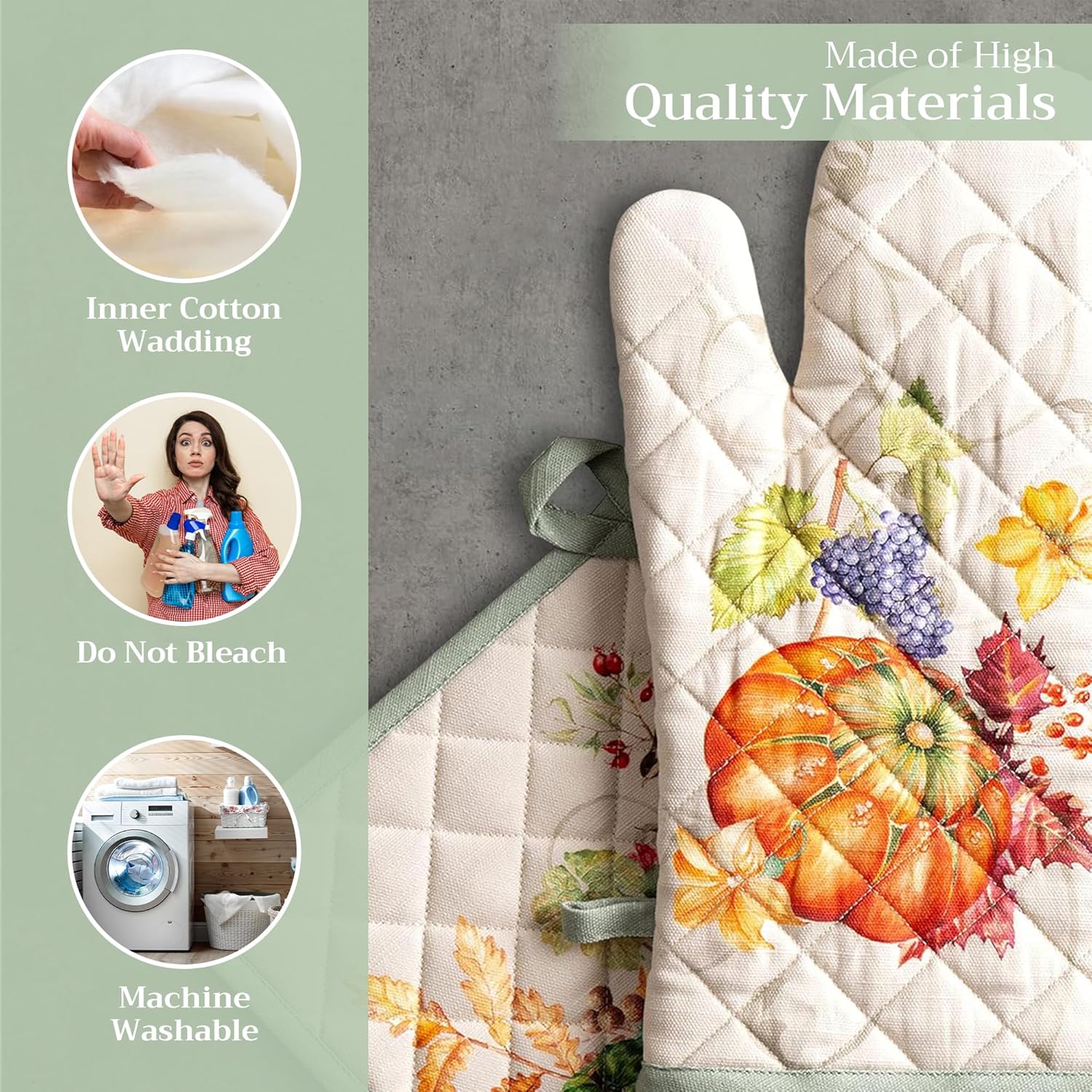 - Premium Quality: Crafted from quilted 100% cotton, this heat resistant oven mitt and pot holder set offers comfort, flexibility, and protection from hot cookware. Ideal cotton oven mitts for daily kitchen use and cooking safety