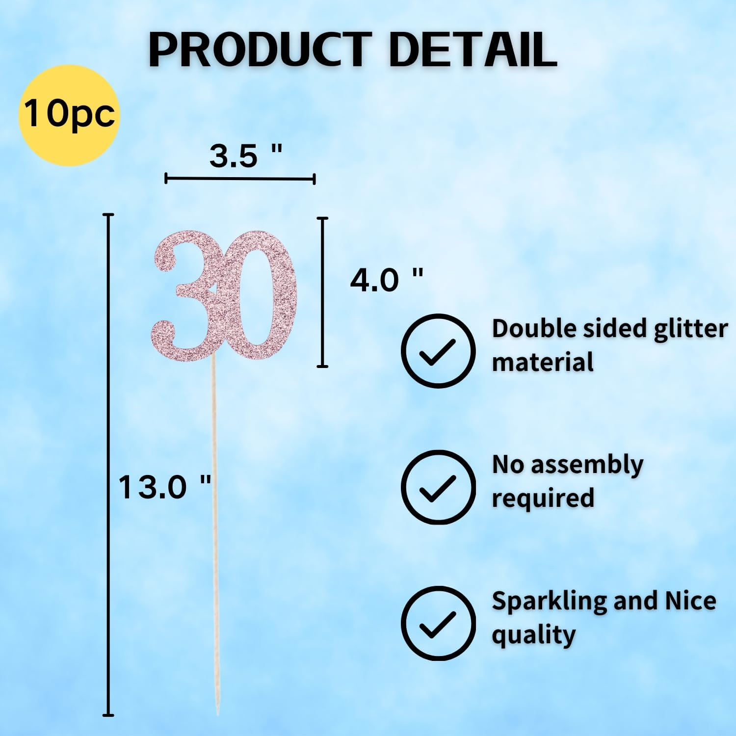 - Package:10 pack "30" table topper decoration sticks all were assembled.Beautifuly and shining.